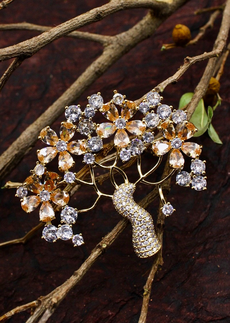 Beautifully designed this saree pin from Sonchafa Jewellery will strike you at very first look. It feature wonderful design and made from rose gold , golden finish metal. This designer saree pin will fetch you lots of compliments from onlookers from onlookers for your amazing choice.