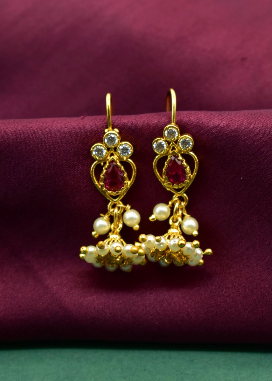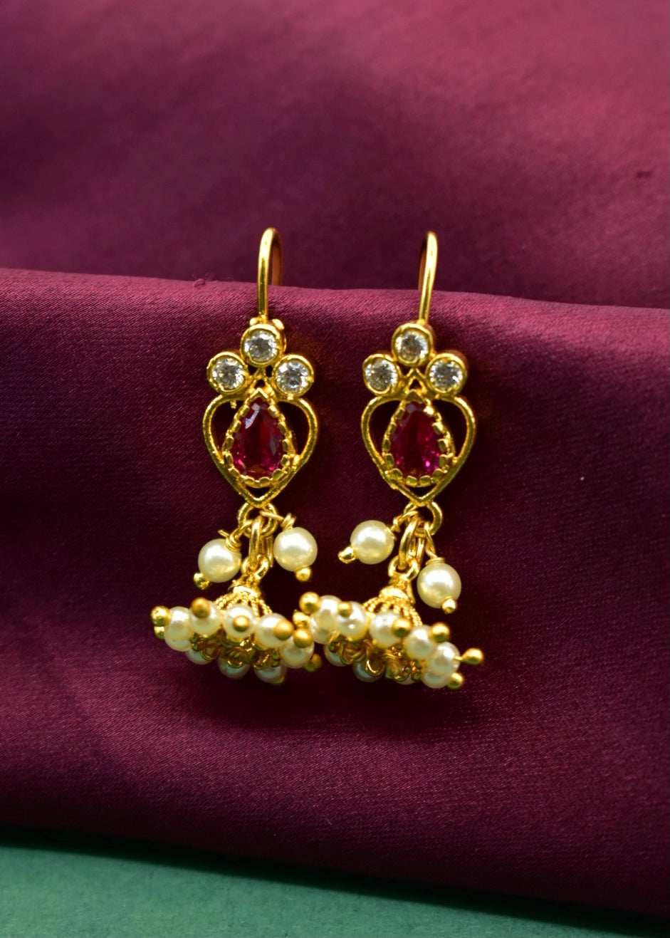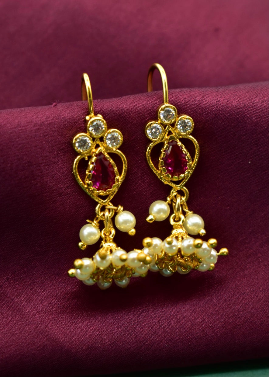 Complete your Maharashtrian look by clubbing this pair of pink colour Classy bugdi earrings with your traditional costume. It is styled with studded pink, white stone and made from golden finish metal. This wonderful earrings bugadi has completed your traditional look.
