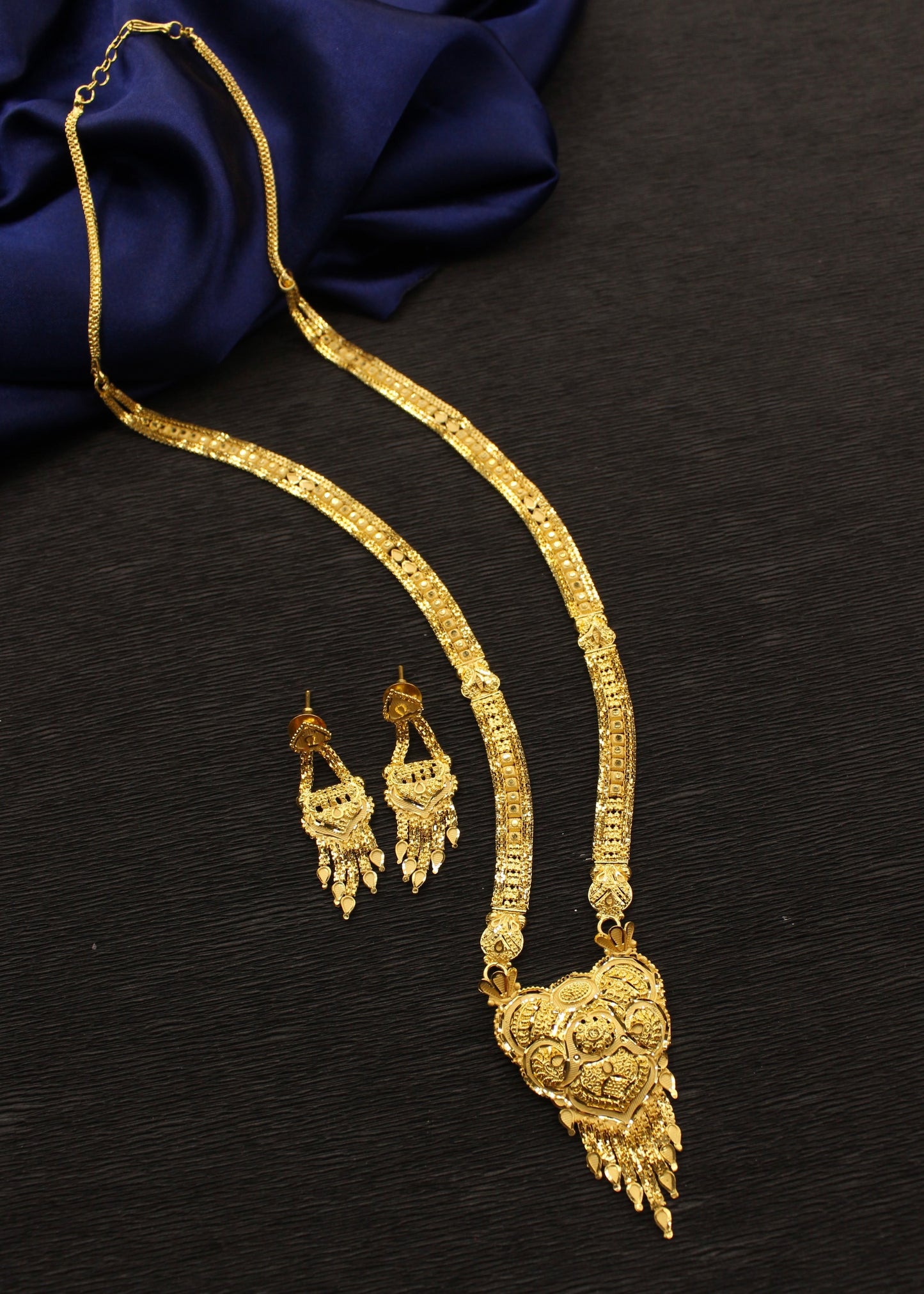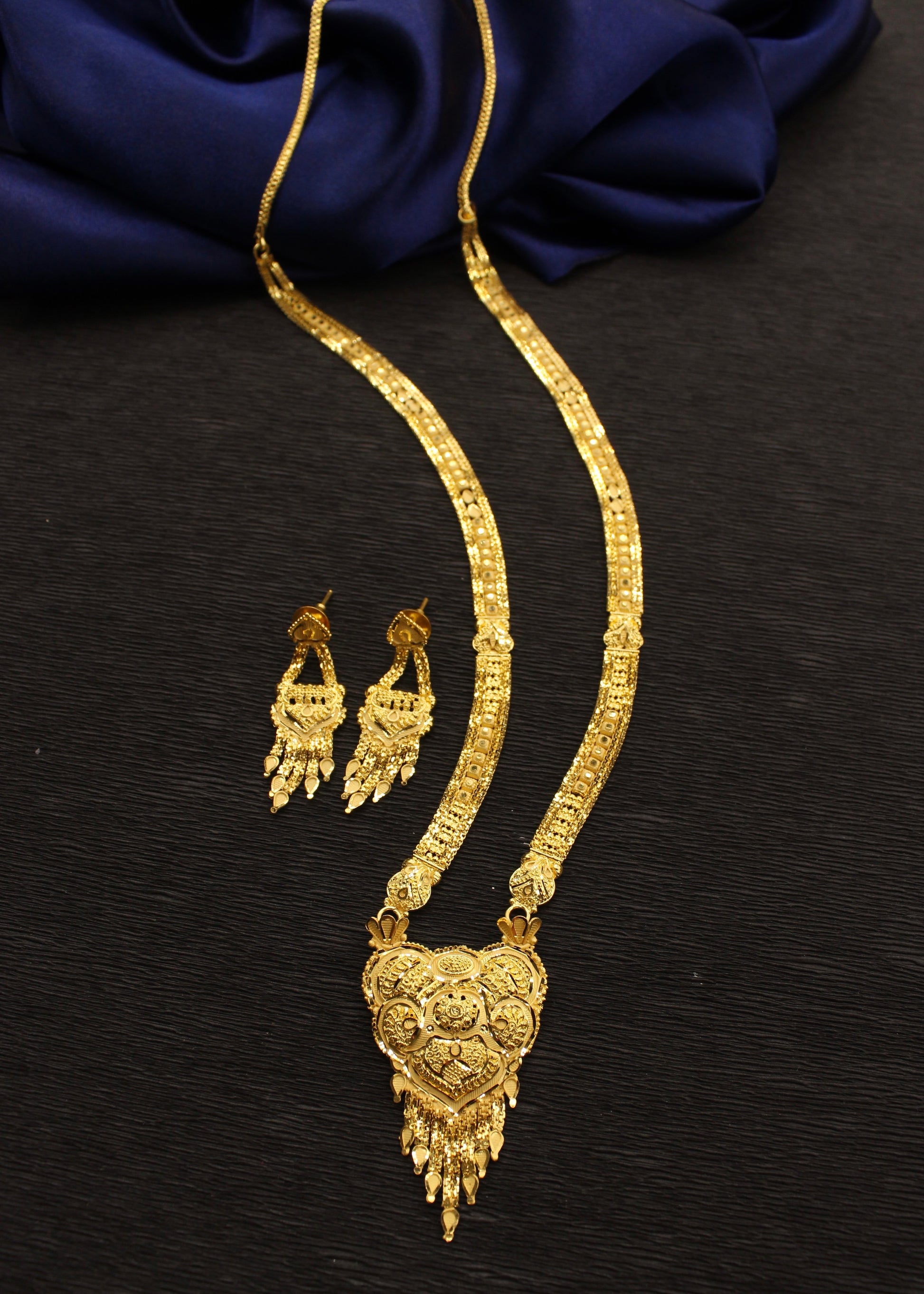 Sonchafa Jewellery offers this Splendid necklace set for stylish women like you. This necklace will surely give you attractive look. In addition it has beautiful earrings. It is long lasting and good in quality.