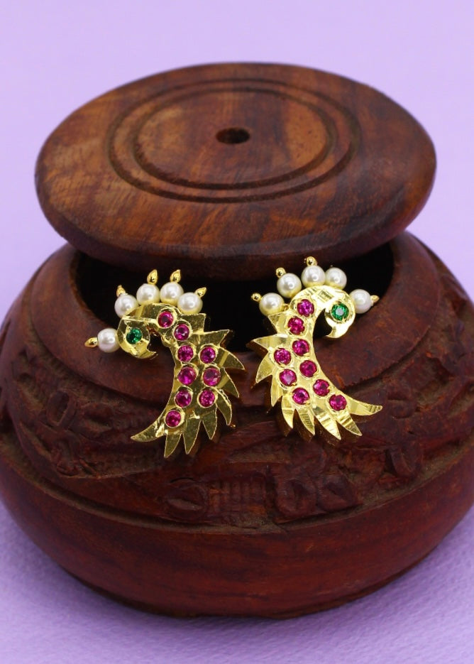 Look absolutely gorgeous by clubbing this pair of golden finish adorable earrings with your party costume. They are embedded with pearls beads and made from golden finish metal. They are superior in quality and will be your fashion companion for many years.