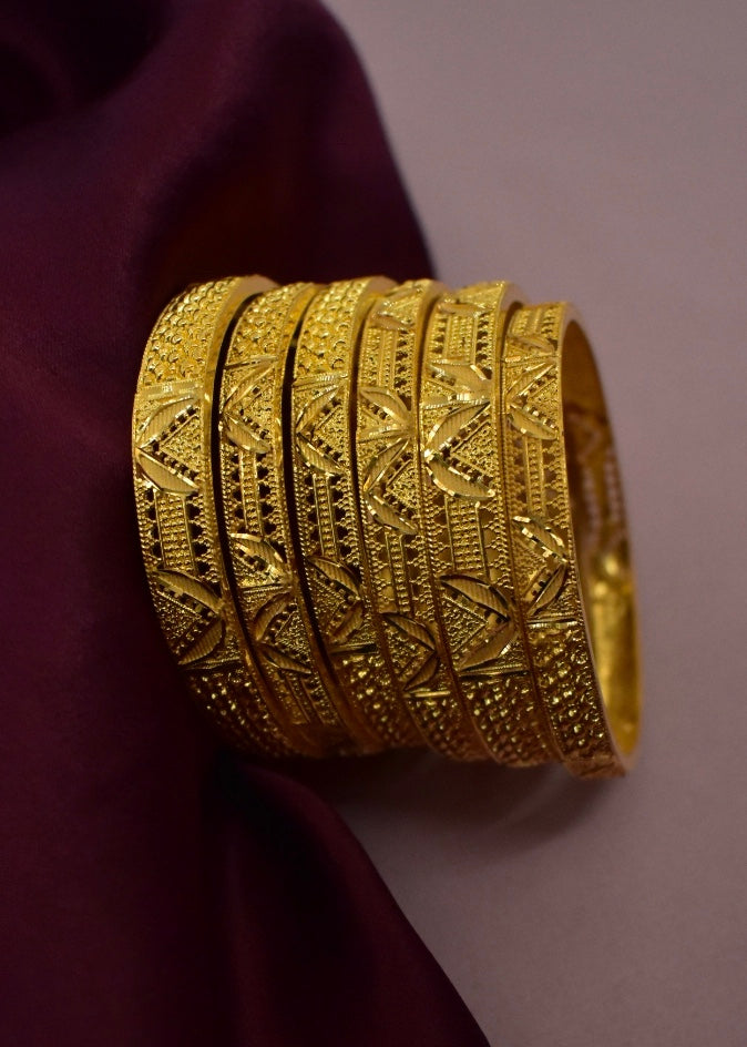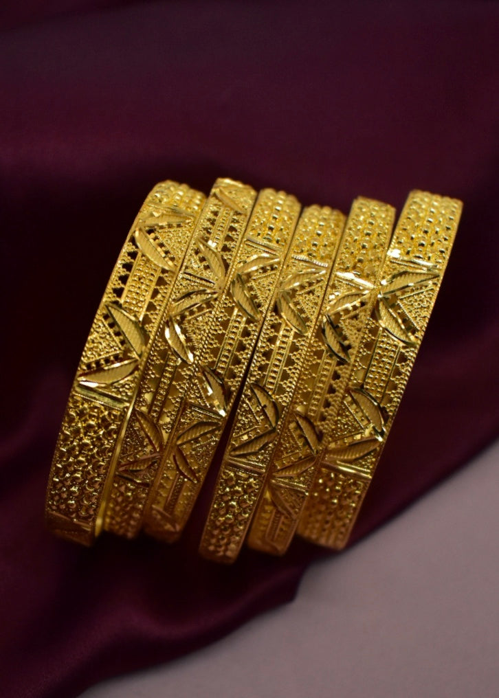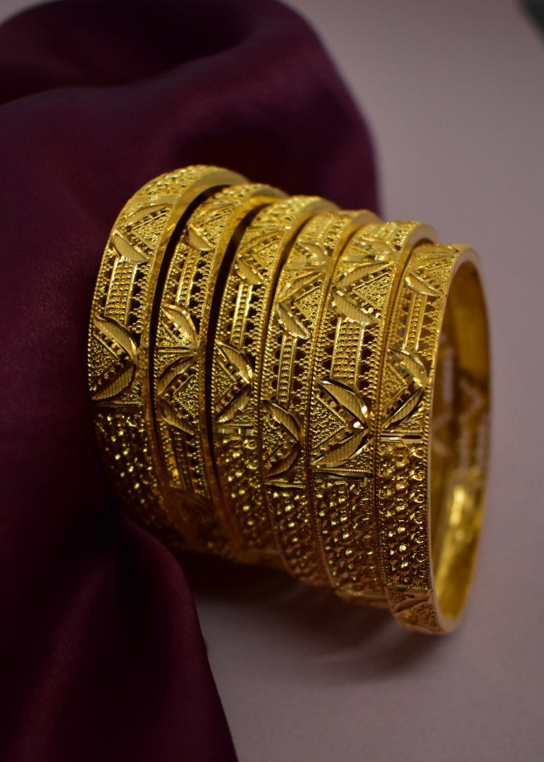 Make a elegant addition to your accessory collection by adding this 1 gram gold plated bangles from Sonchafa Jewellery. These are embedded with attractive designer beads on golden crafted metal base. These bangles are made from metal and will surely give you distinct look.
