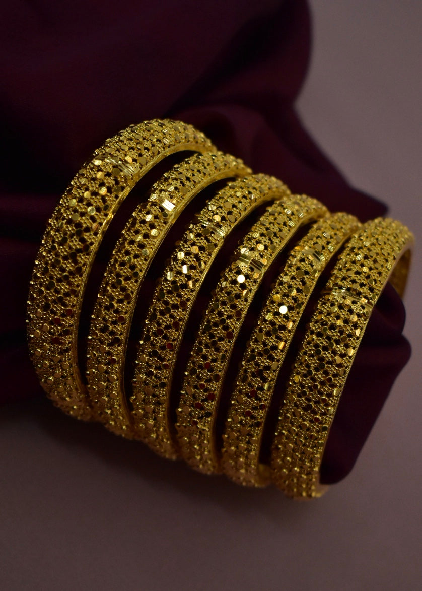Set your trend of fashion by creating your distinct style statement. Sonchafa jewellers presents 1 Gram gold plated this beautiful bangles will help you to create your style statement. These are studded with golden sparkling beads and crafted from golden finish metal. These bangles are high in quality and will be your fashion companion for many years.
