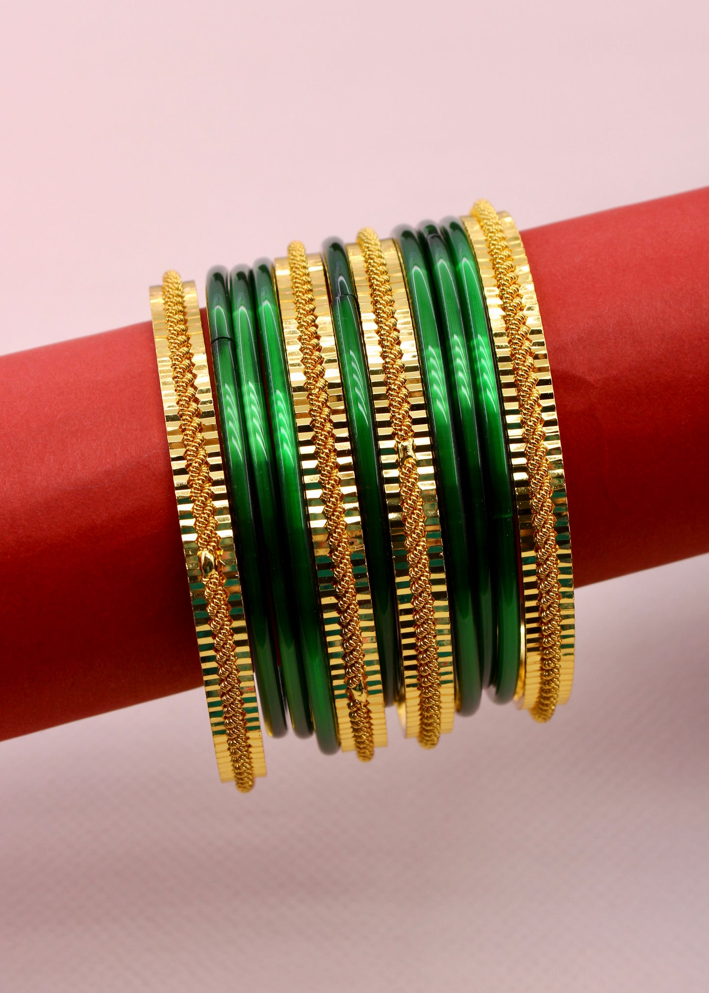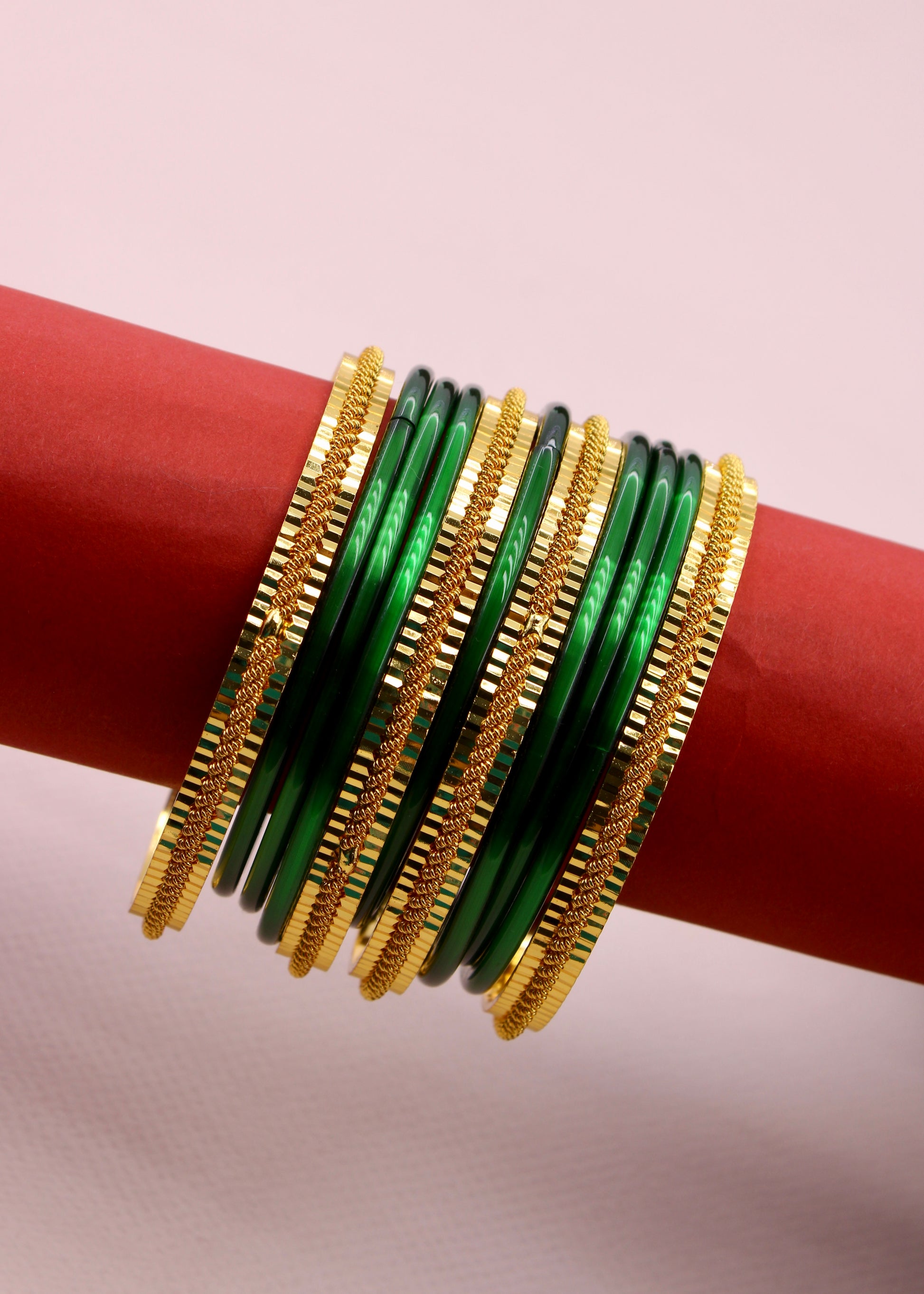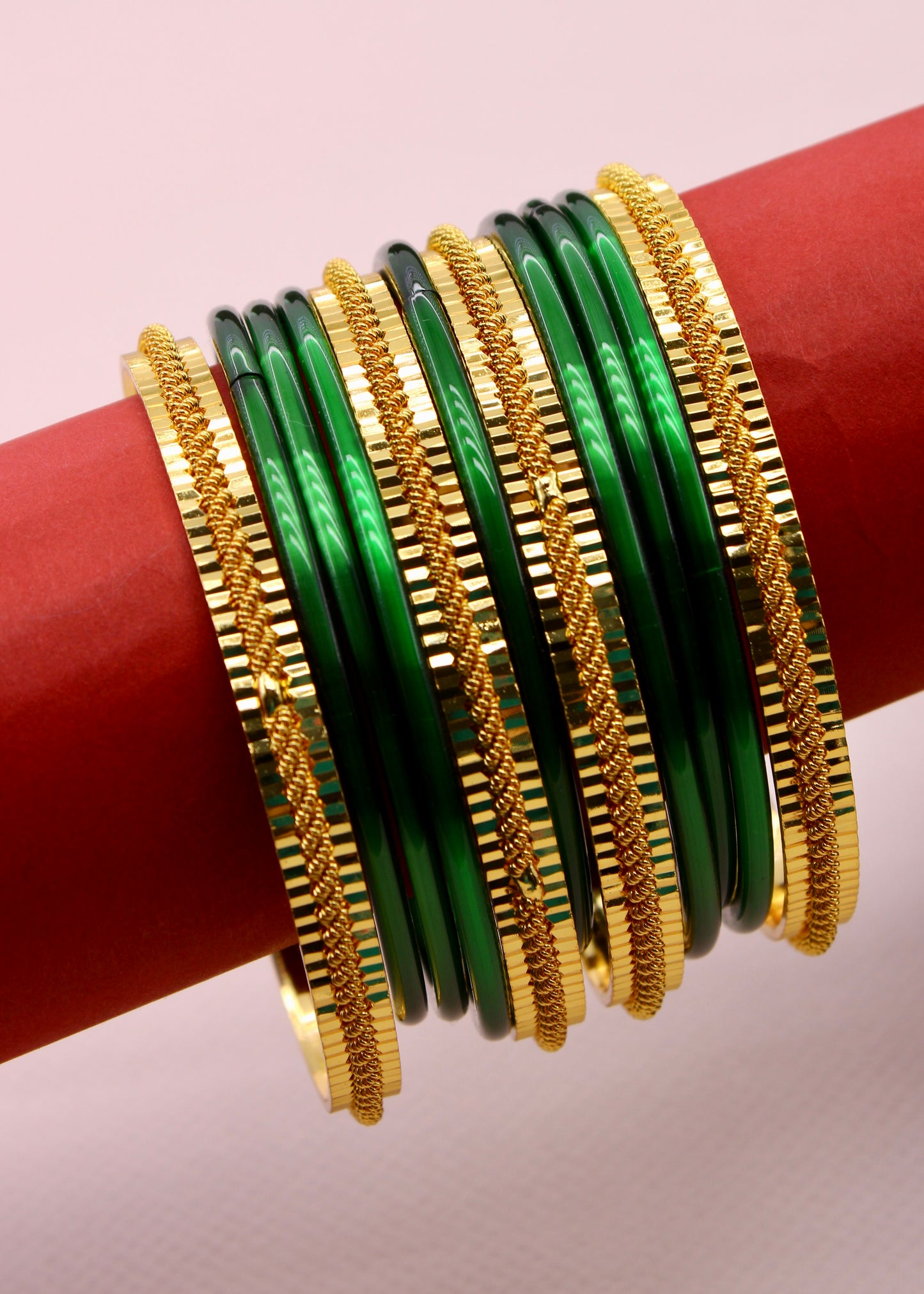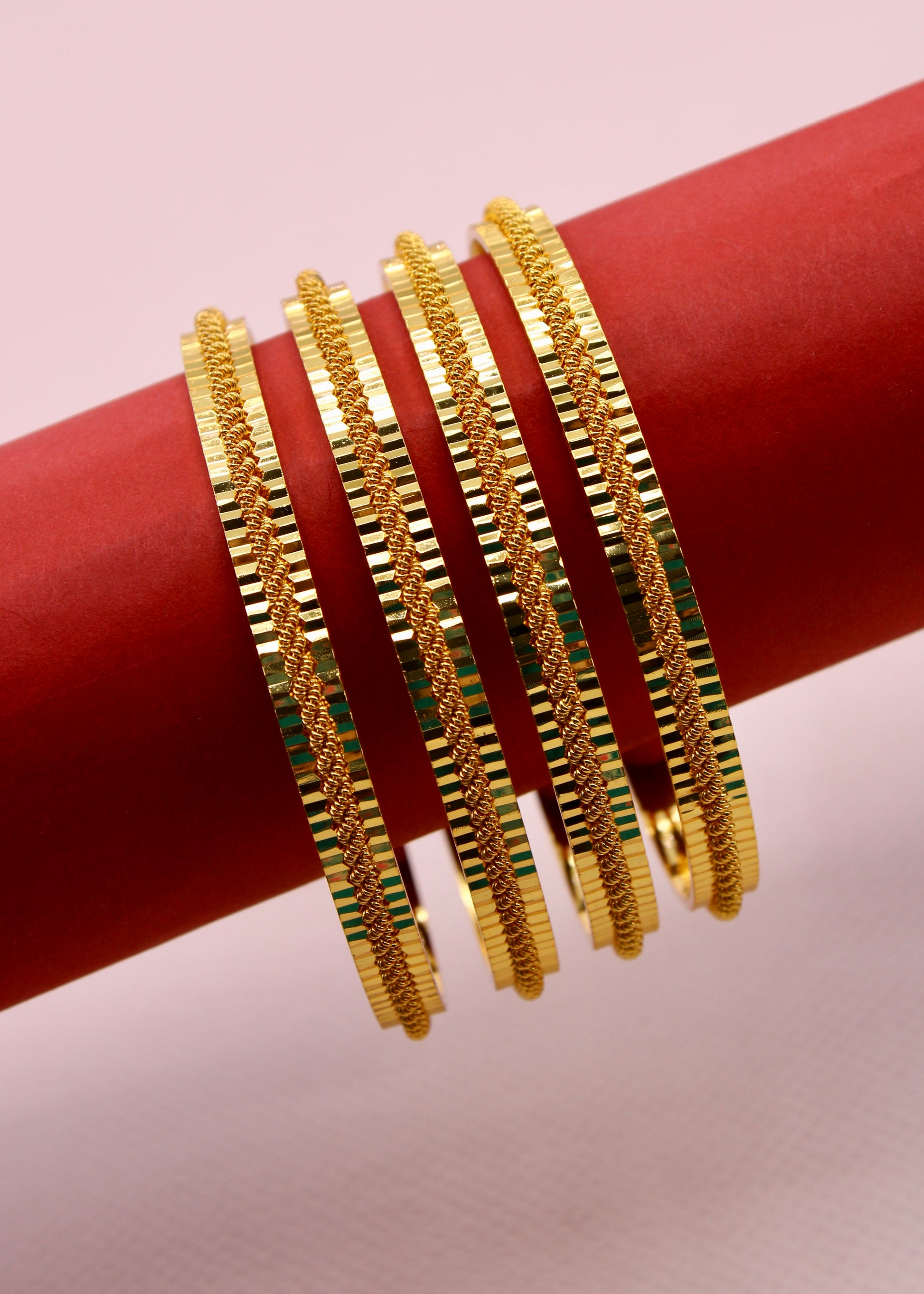 Step out in style by wearing this pair of beautiful bangles with your traditional saree. They are embedded with shimmering design on metal surface and crafted from antique gold finish metal. These bangles are good in quality and skin-friendly as well.