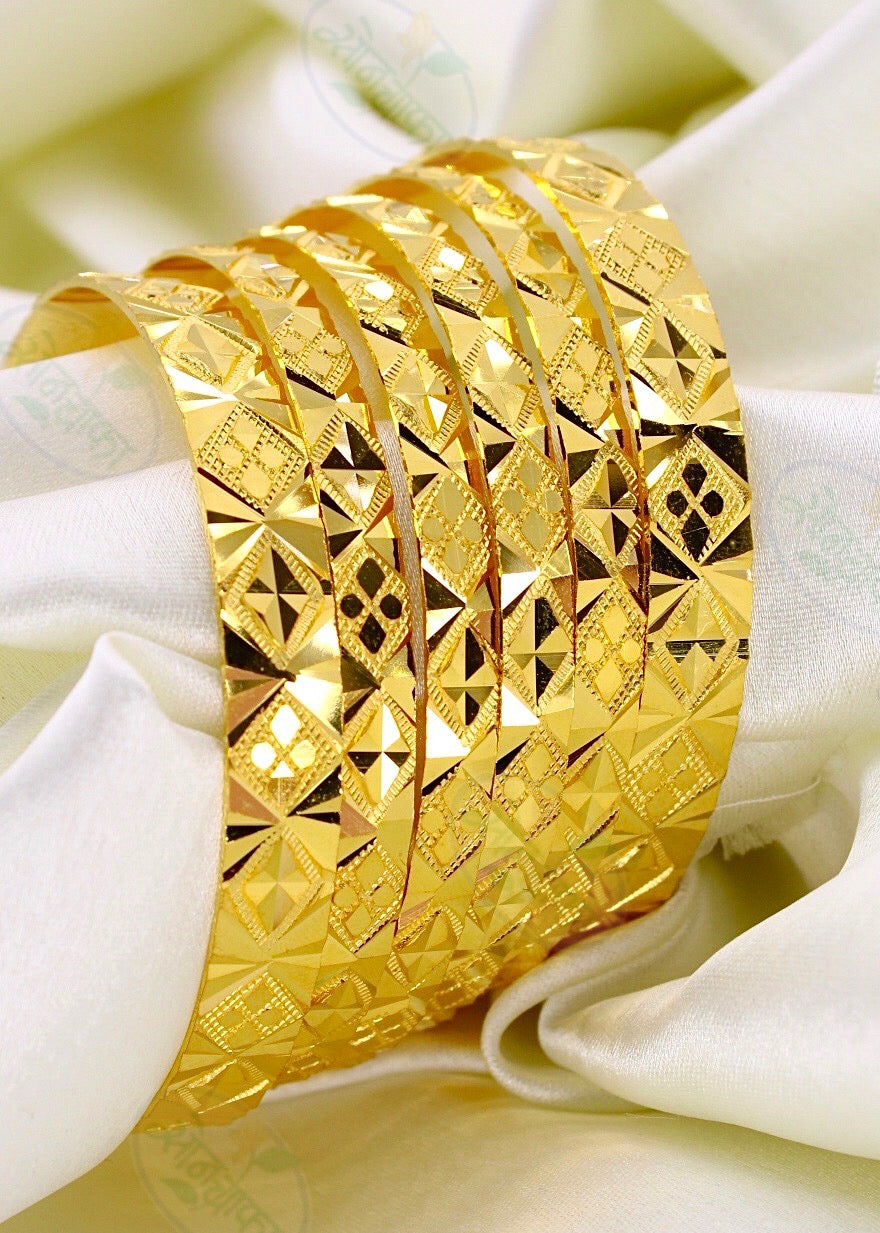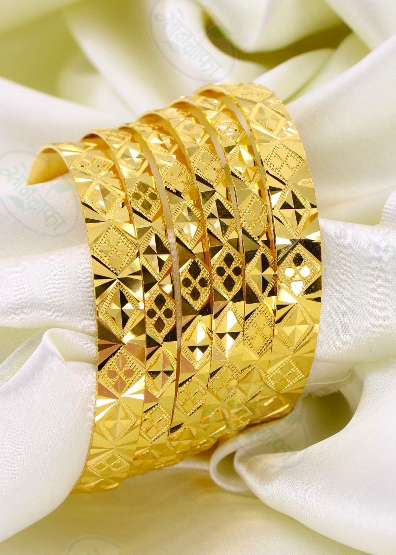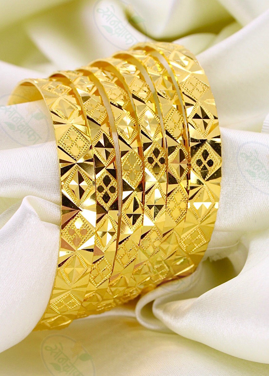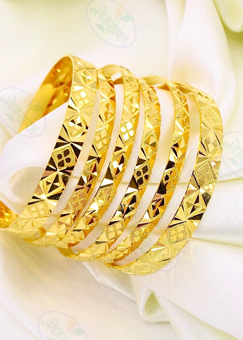 Make a exemplary addition to your accessory collection by adding this pair of 1 gram gold plated bangles from Sonchafa Jewellery. They are embedded with square design on metal base. These bangles are made from metal and will surely give you distinct look.
