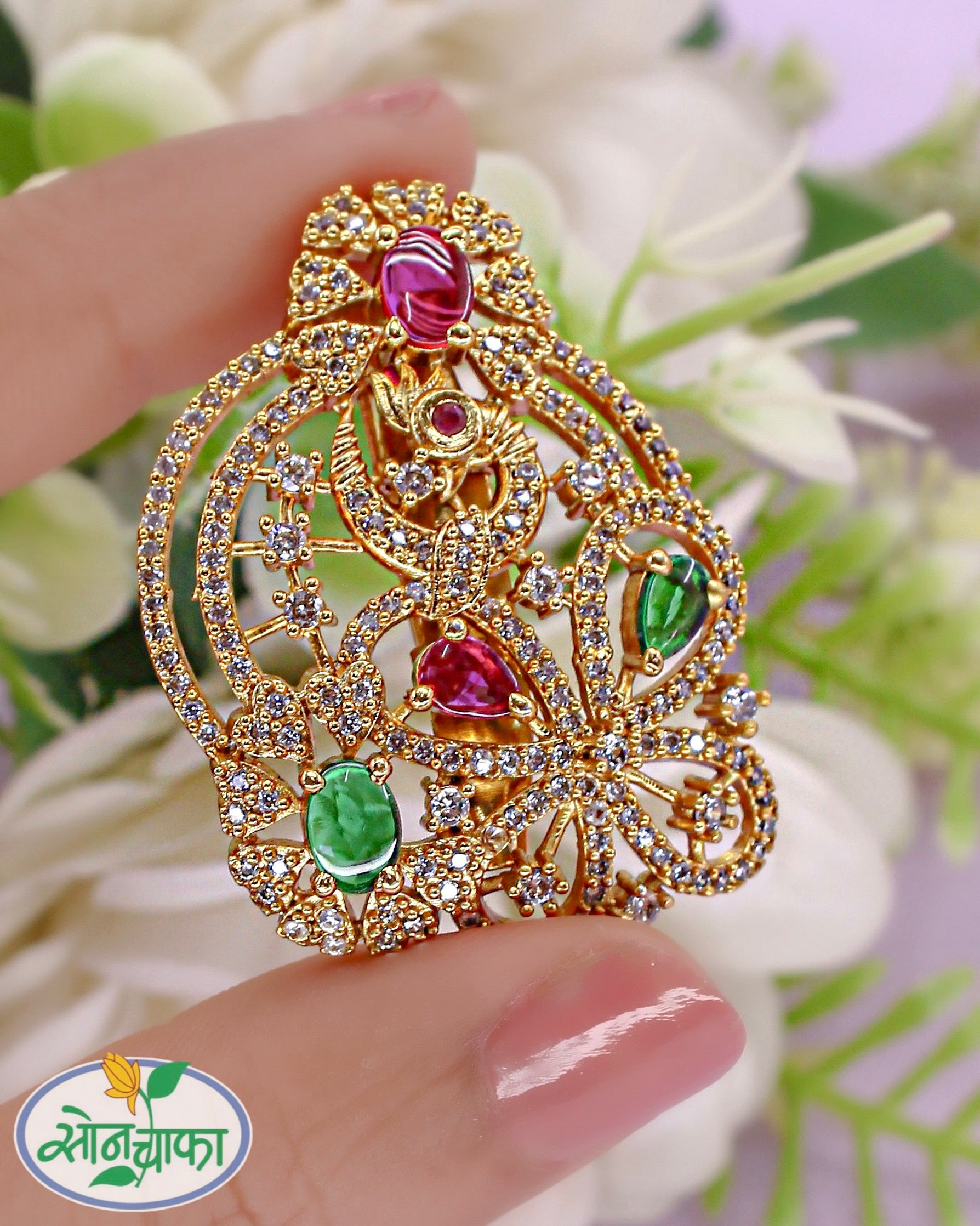A very attractive floral bud saree pin is best pick for modern women of today from Sonchafa Jewellers