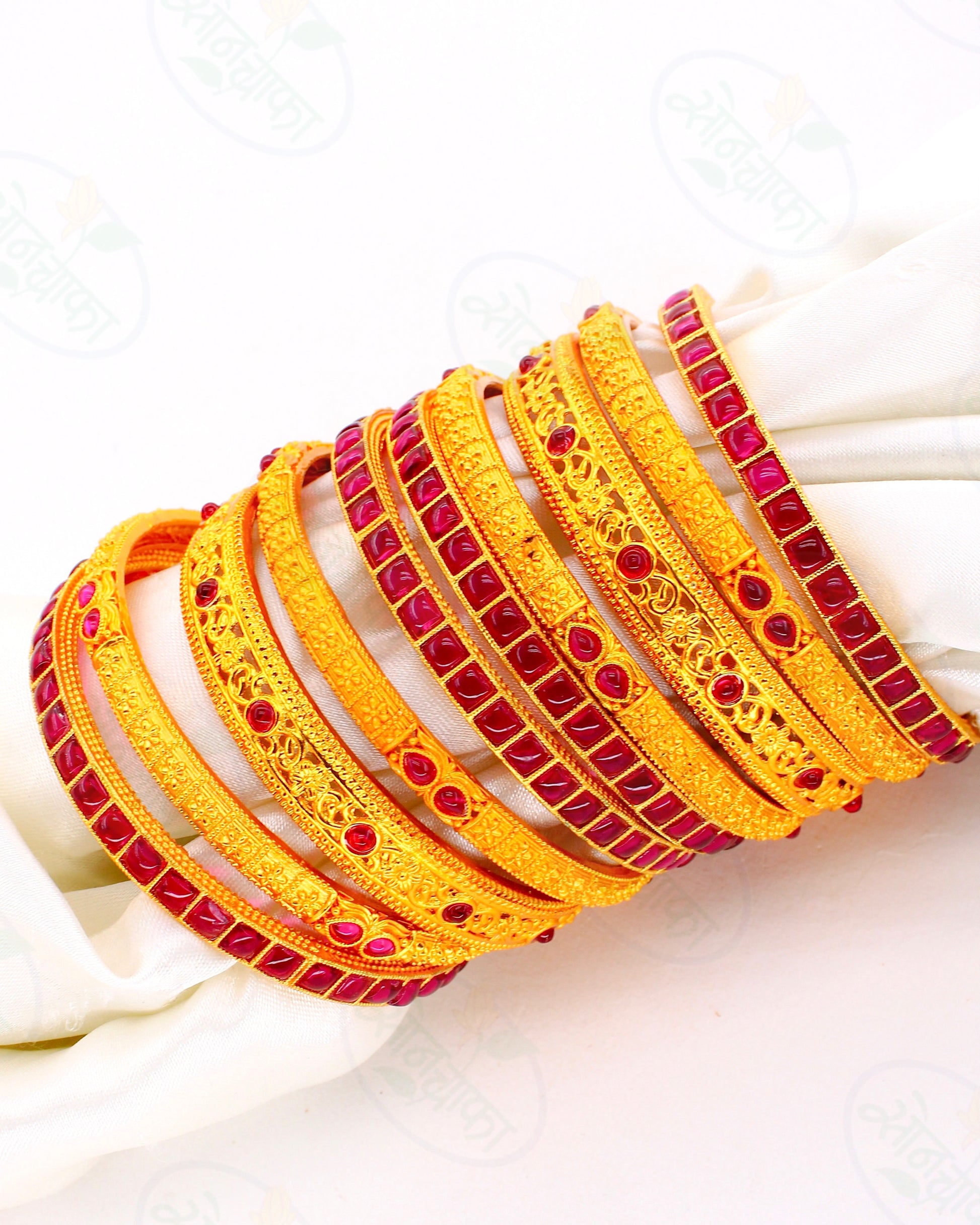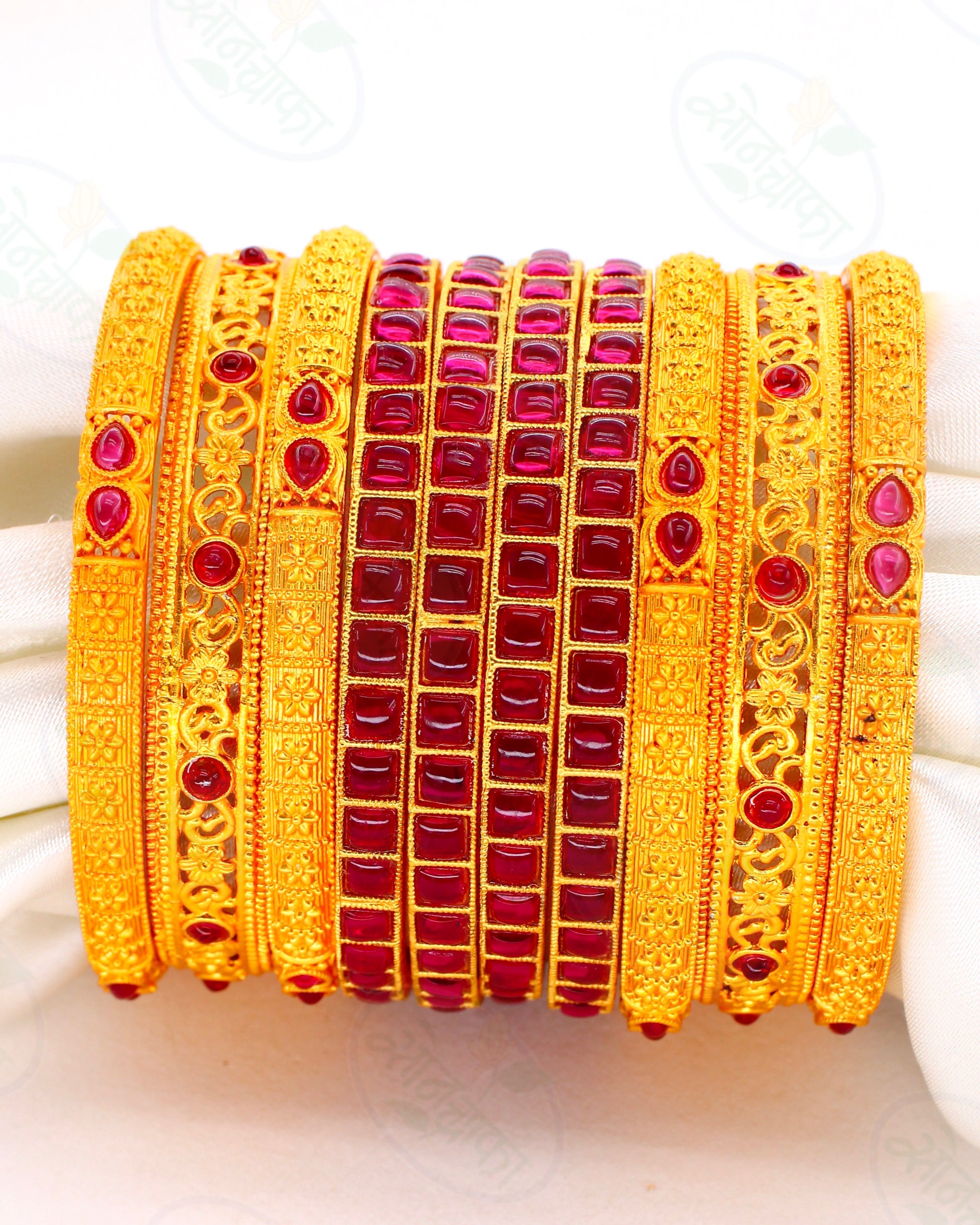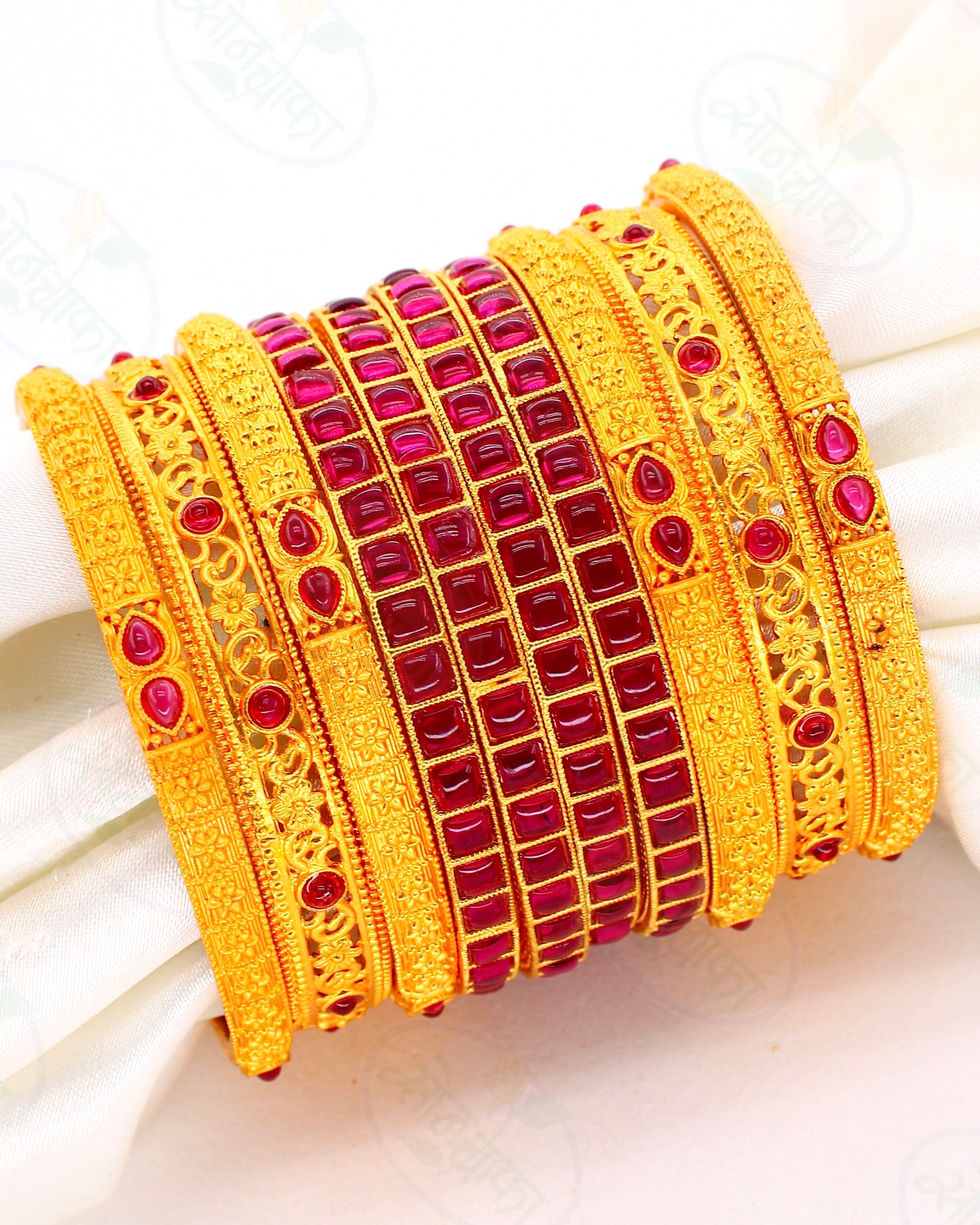 This beautiful bangle set from Sonchafa, will appeal to you at very first glance. They are studded with sparkling kemp stone along with matte finish bangles are high in quality and skin-friendly as well. So what are you waiting for... Order now