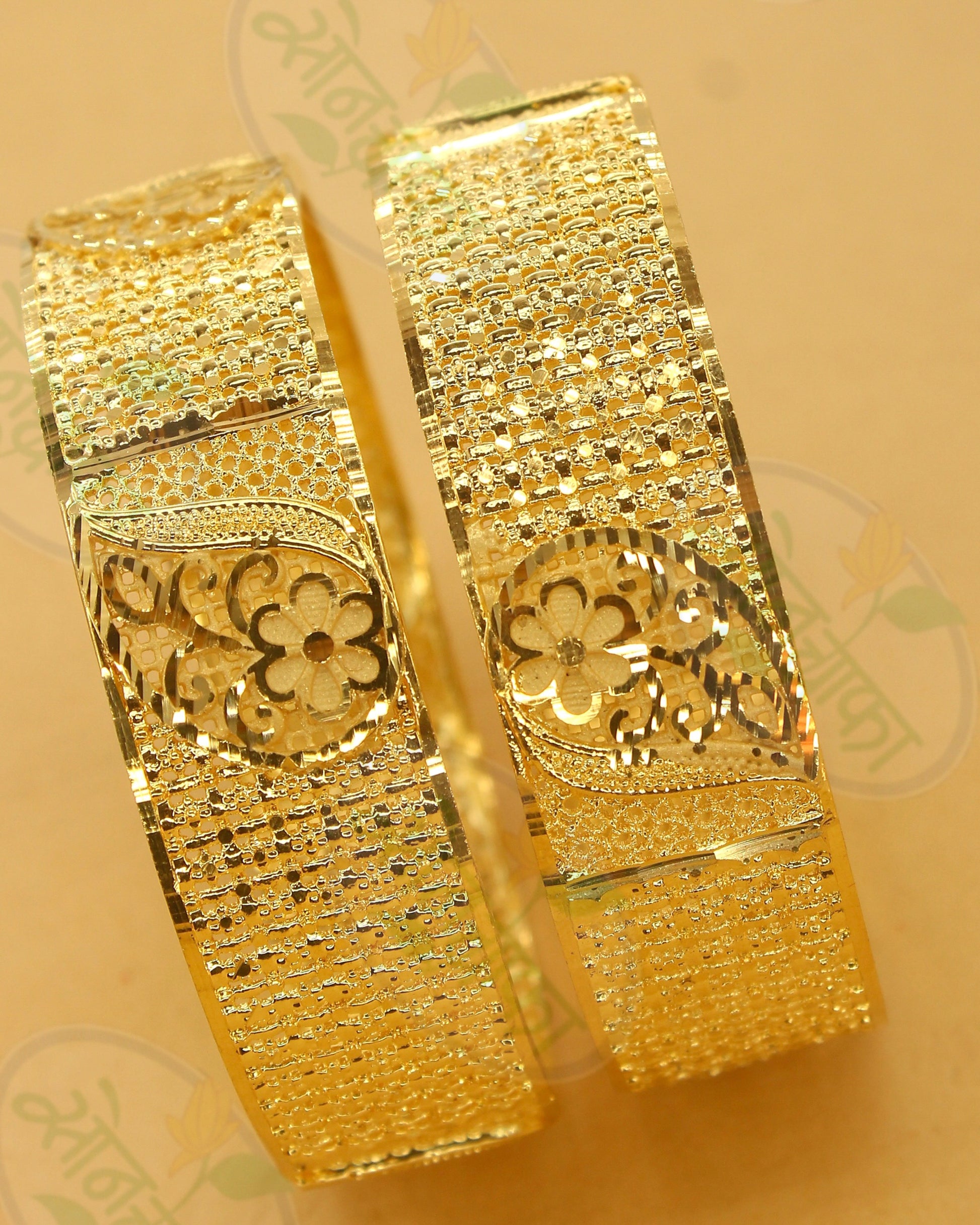 Sonchafa Jewellery brings to you this set of four beautiful bangles in appealing look They are embedded with sparkling gold and made from 1 gram gold polished metal.