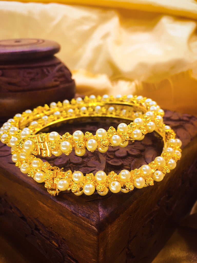 Exclusively designed this set of two stylish bangles is fashioned for stylish women like you. They feature wonderful design and made from golden finish metal. These classy bangles will fetch you lots of compliments from onlookers for your amazing choice.