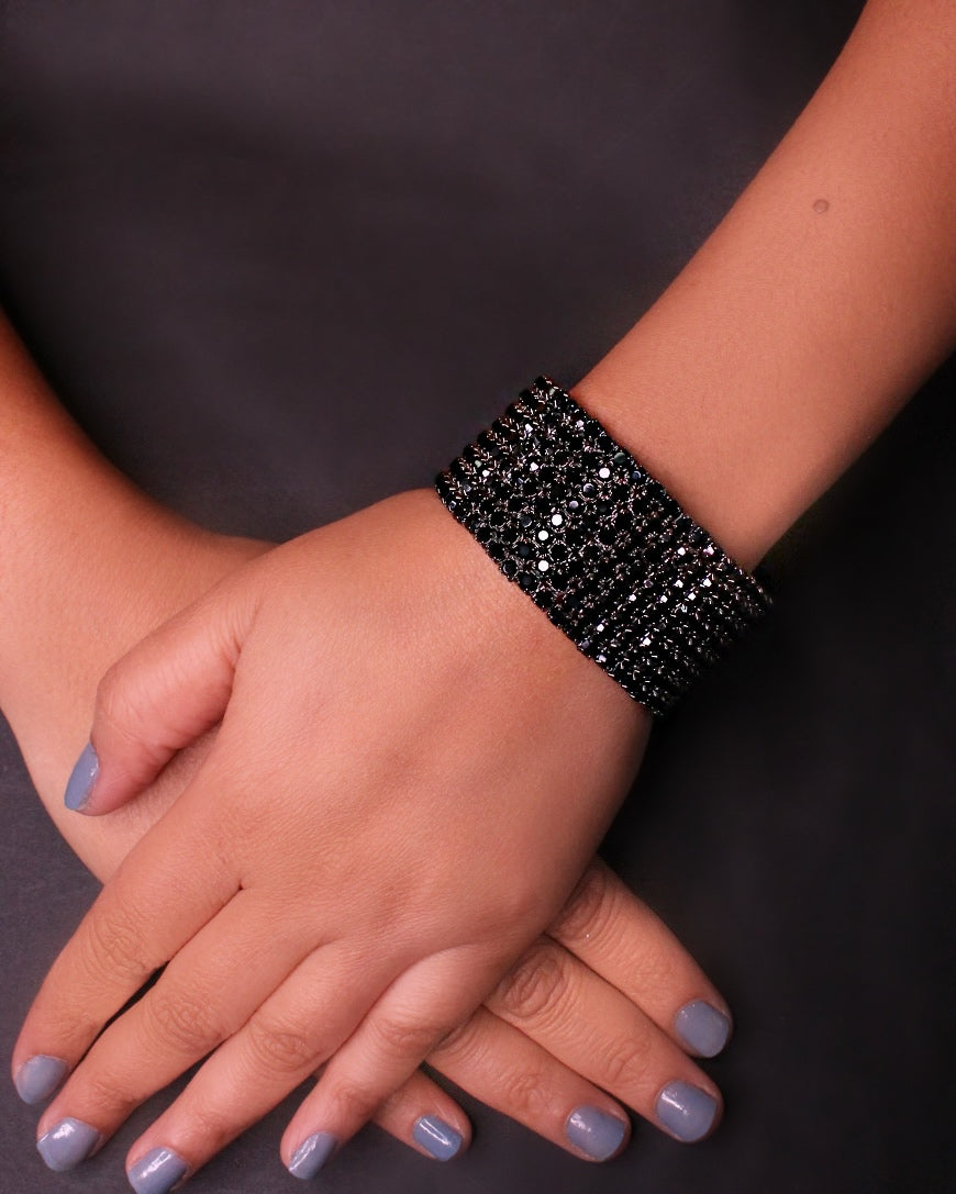 Simply beautiful this round shape bracelet studded with precious dia diamonds is super adorable from Sonchafa Jewellers. You can club this bracelet with any type of outfits. This golden finish metal crafted bracelet is easy to wear and skin-friendly as well.