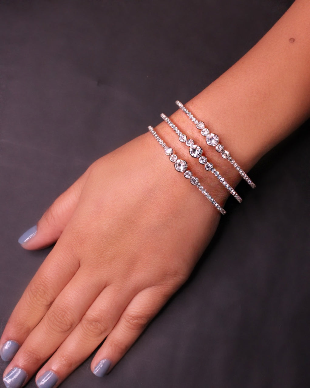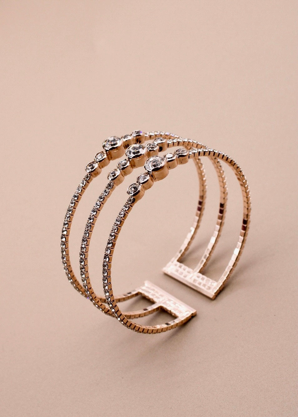 If you are found of holding designer accessory then you must pick this golden finish classy bracelet from Sonchafa Jewellery. It is decked with precious white stones and made from gold finish metal. This bracelet is superior in quality and will be your fashion companion for many years.