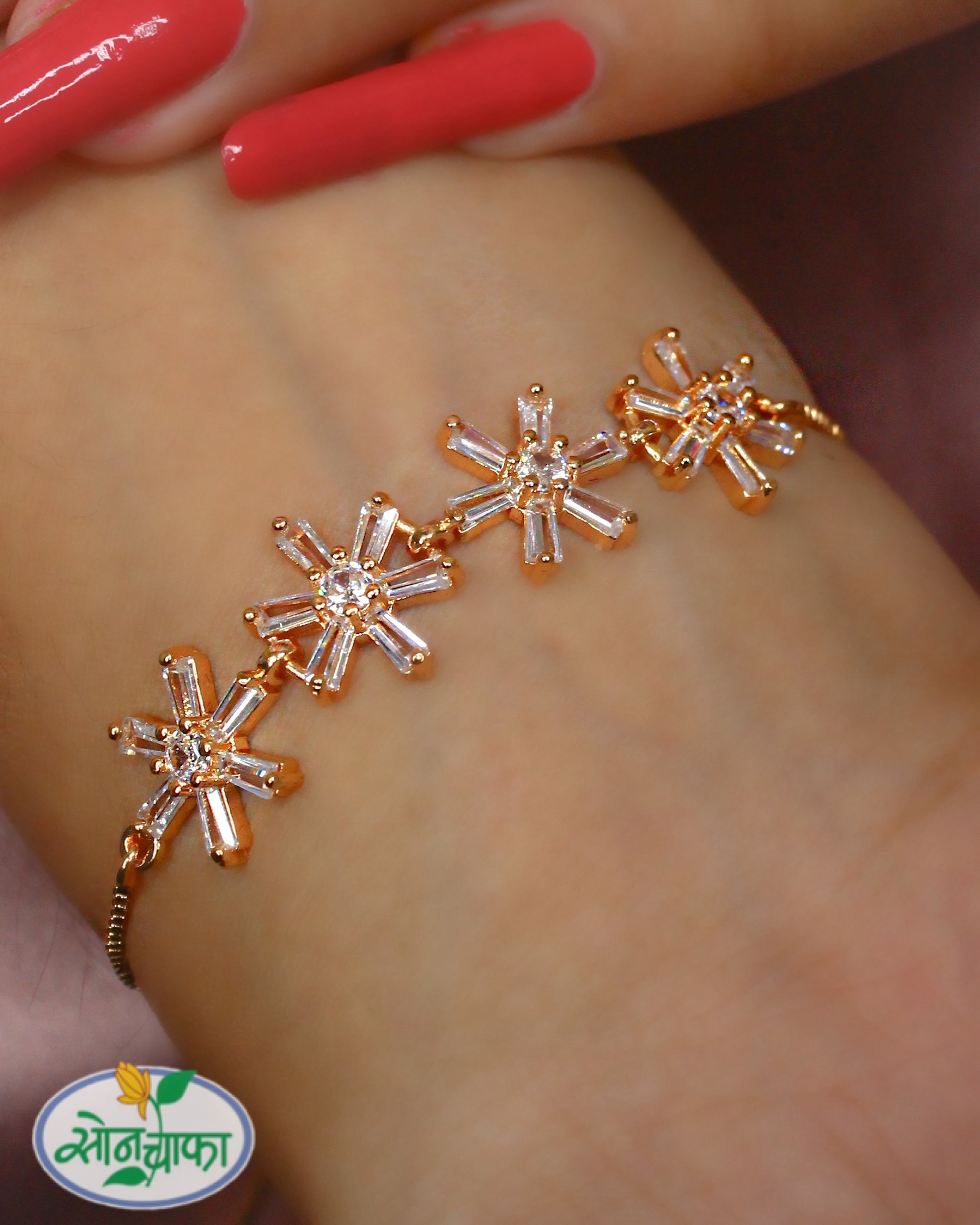 Complete your party look by clubbing this adorable bracelet from sonchafa Jewellery. It is embedder with white stone along with rose gold finish metal and crafted from superior quality metal. This fancy bracelet is easy to wear and comfortable to hold.