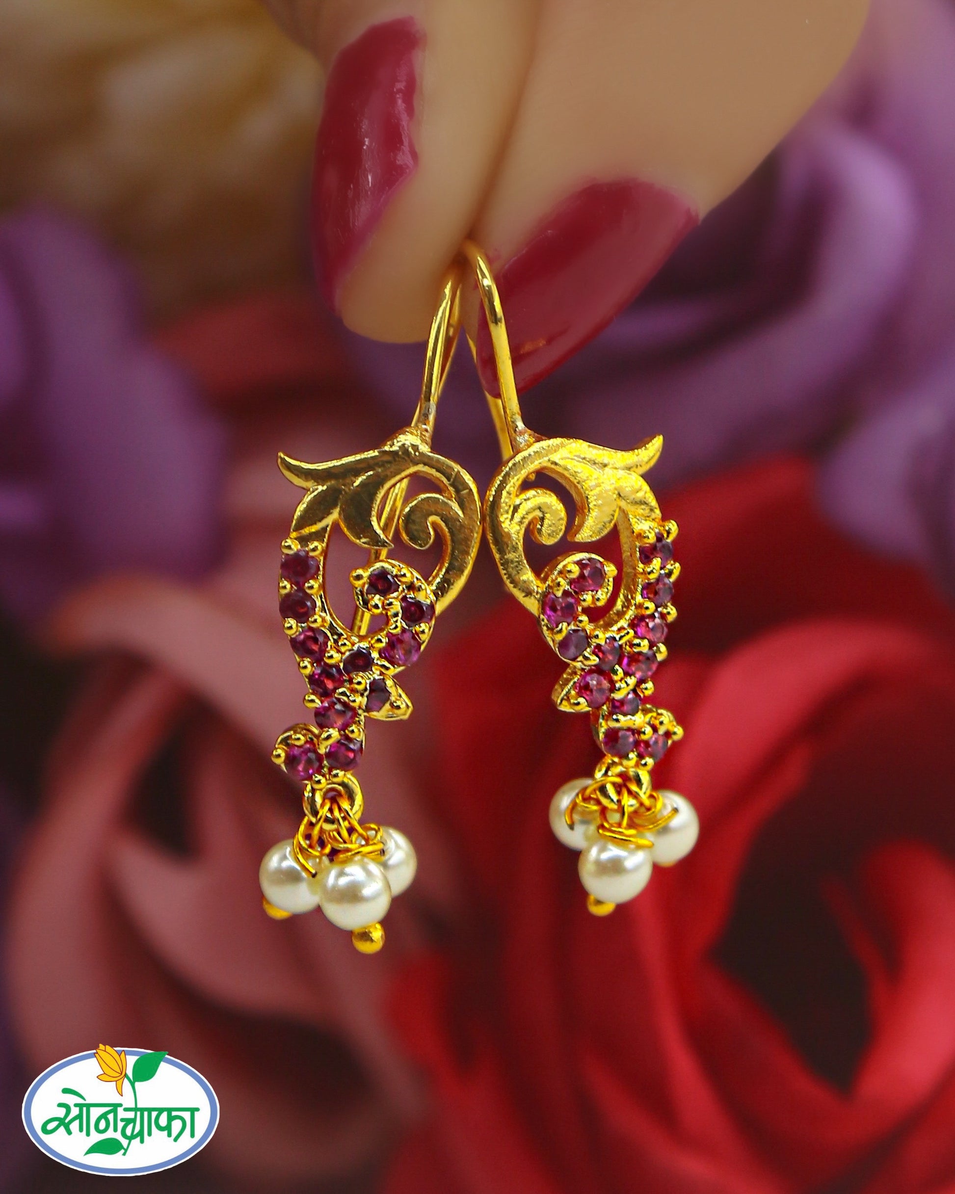 Complete your Maharashtrian look by clubbing this pair of pink colour Classy bugdi earrings with your traditional costume. It is styled with studded pink stone and made from golden finish metal. This wonderful earrings bugadi has completed your traditional look.