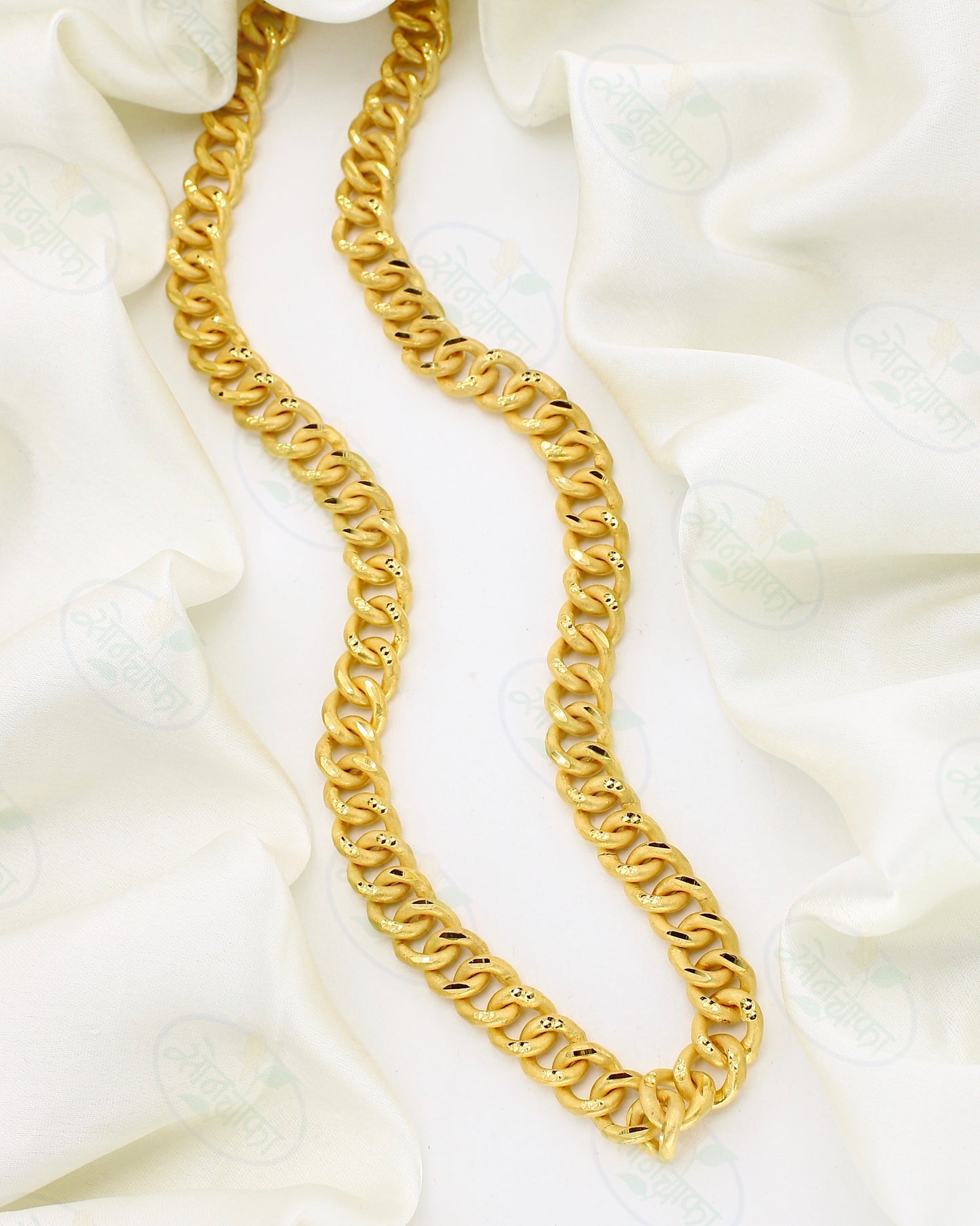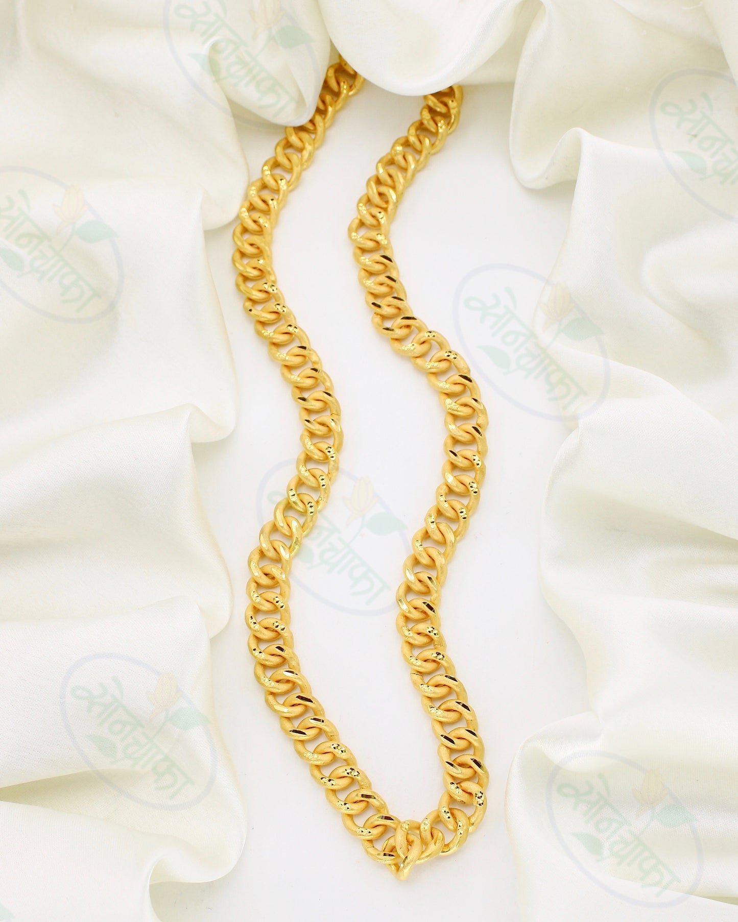 Simple yet very pretty this round design classy chain from Sonchafa Jewellery is best pick for you. It is fashioned from 1 gram gold finish metal and ensures high durability. This chain will look beautiful as it is or else you can team it with pendant.