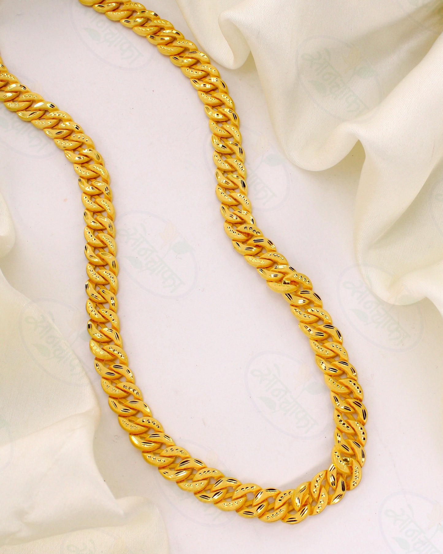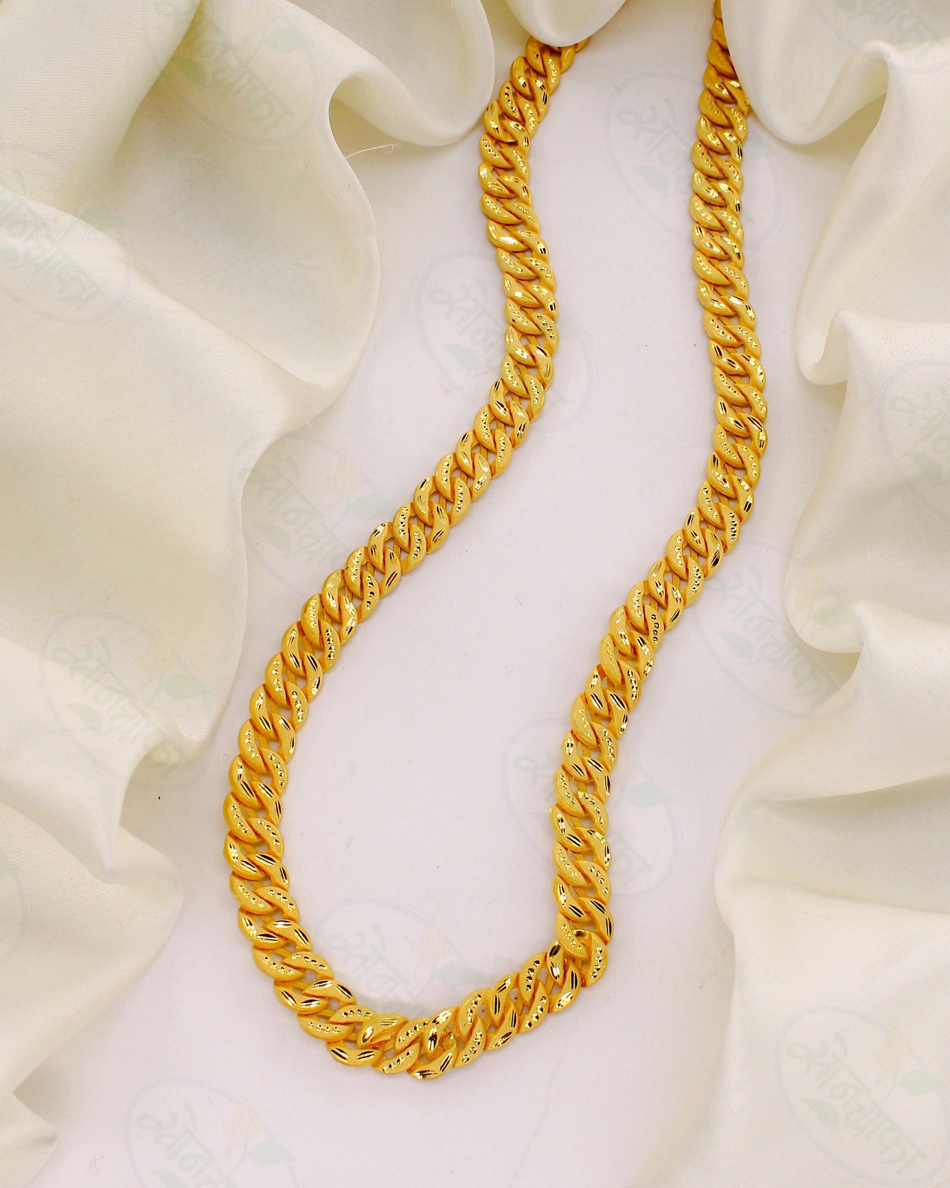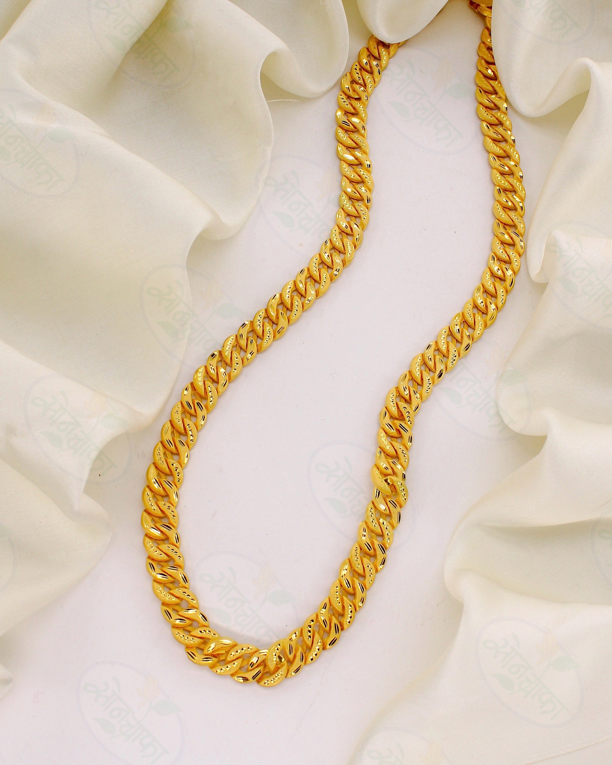 This classy gold plated snake link chain from Golden Links will surely add statement to your look. Team it with any ethnic outfit. Ideal as an everyday -wear accessory. This piece of jewelry comes with the Sonchafa Jewellery of quality and durability.
