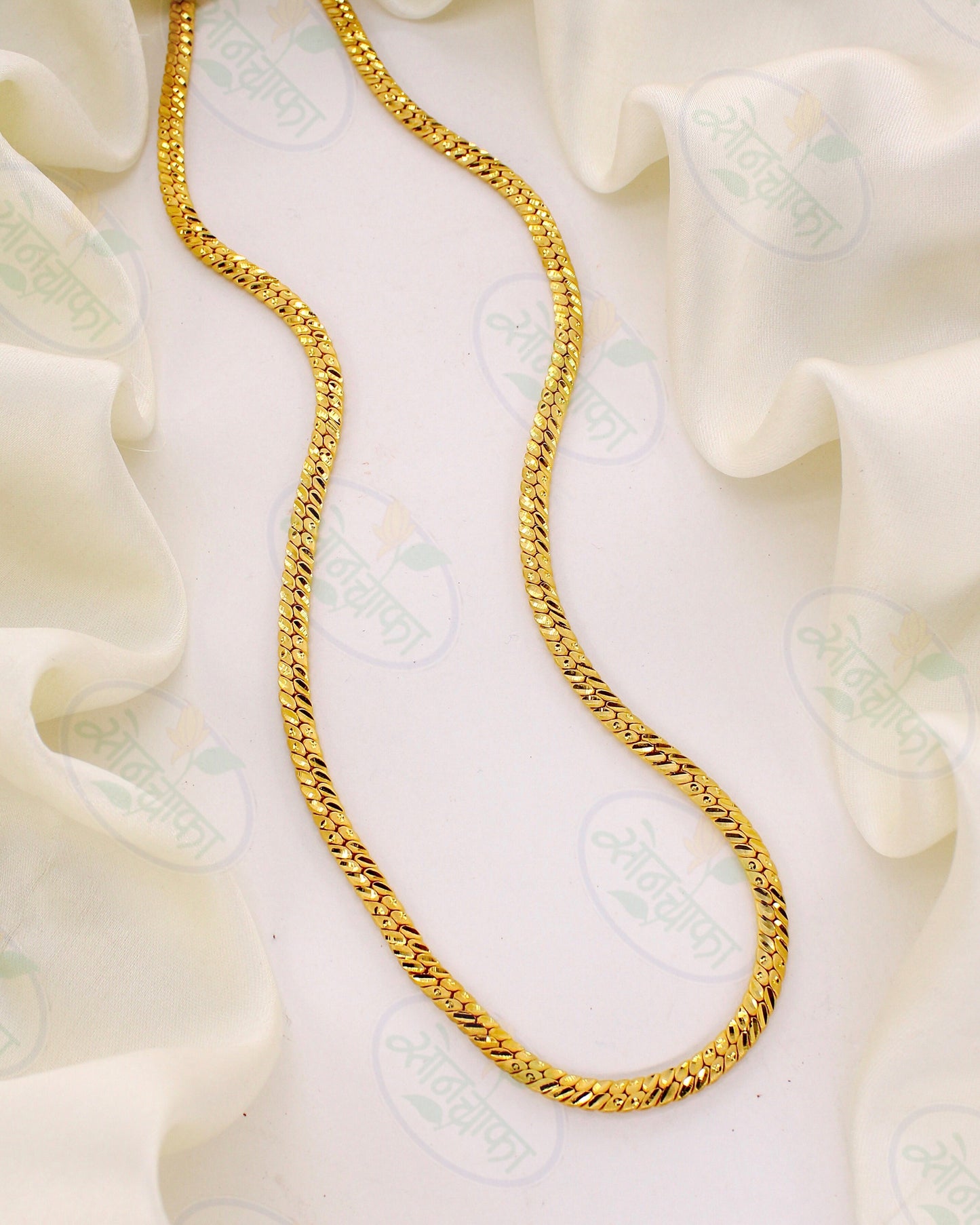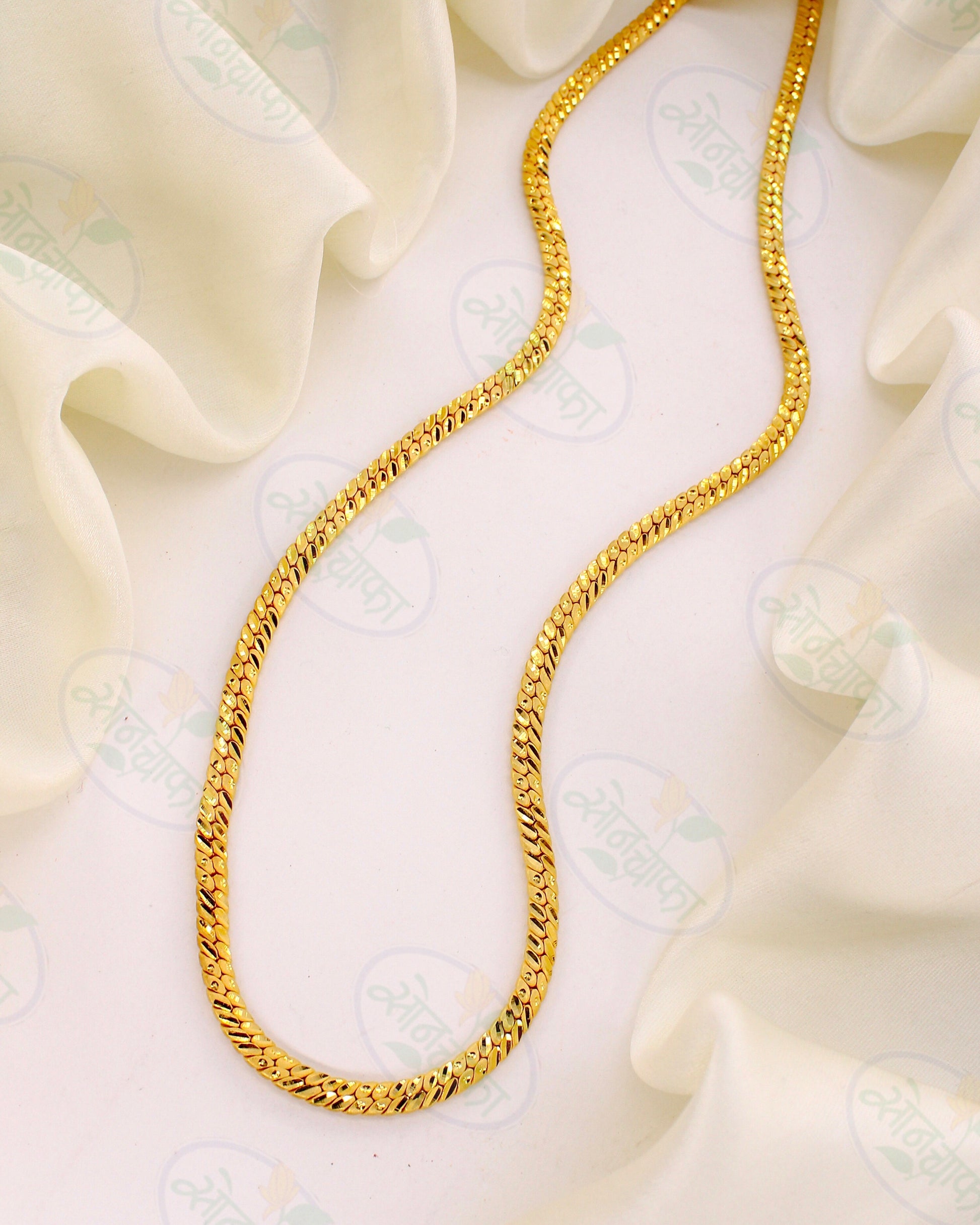 A smart link chain from our Golden Links collection. The chain is a splendid match for kurta and denim. Wear it for any festive occasion. This piece of jewelry comes with the Sonchafa assurance of quality and durability. Caring for your fashion jewelry:
