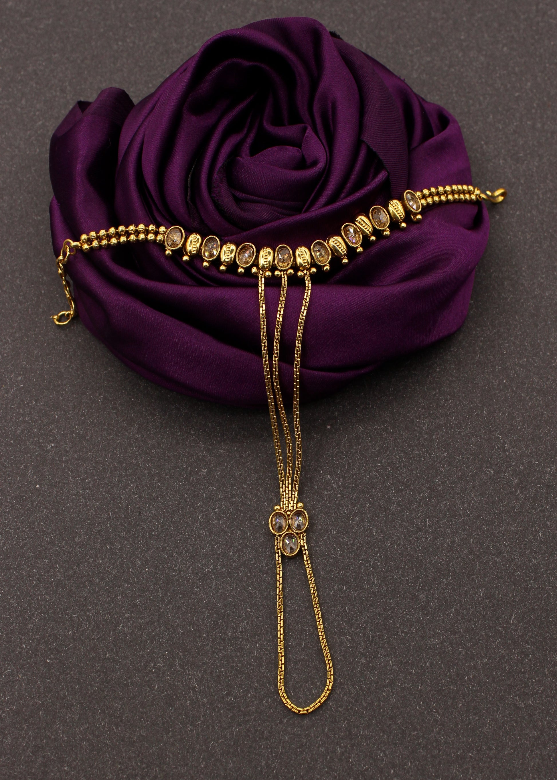 This styled wonderful traditional haatpan form Sonchafa Jewellery which is perfect match our traditional look. It is wonderfully mina work along with studded pink green stone and made from metal. This designer haatpan will fetch you lots of compliments from onlookers for your amazing choice.