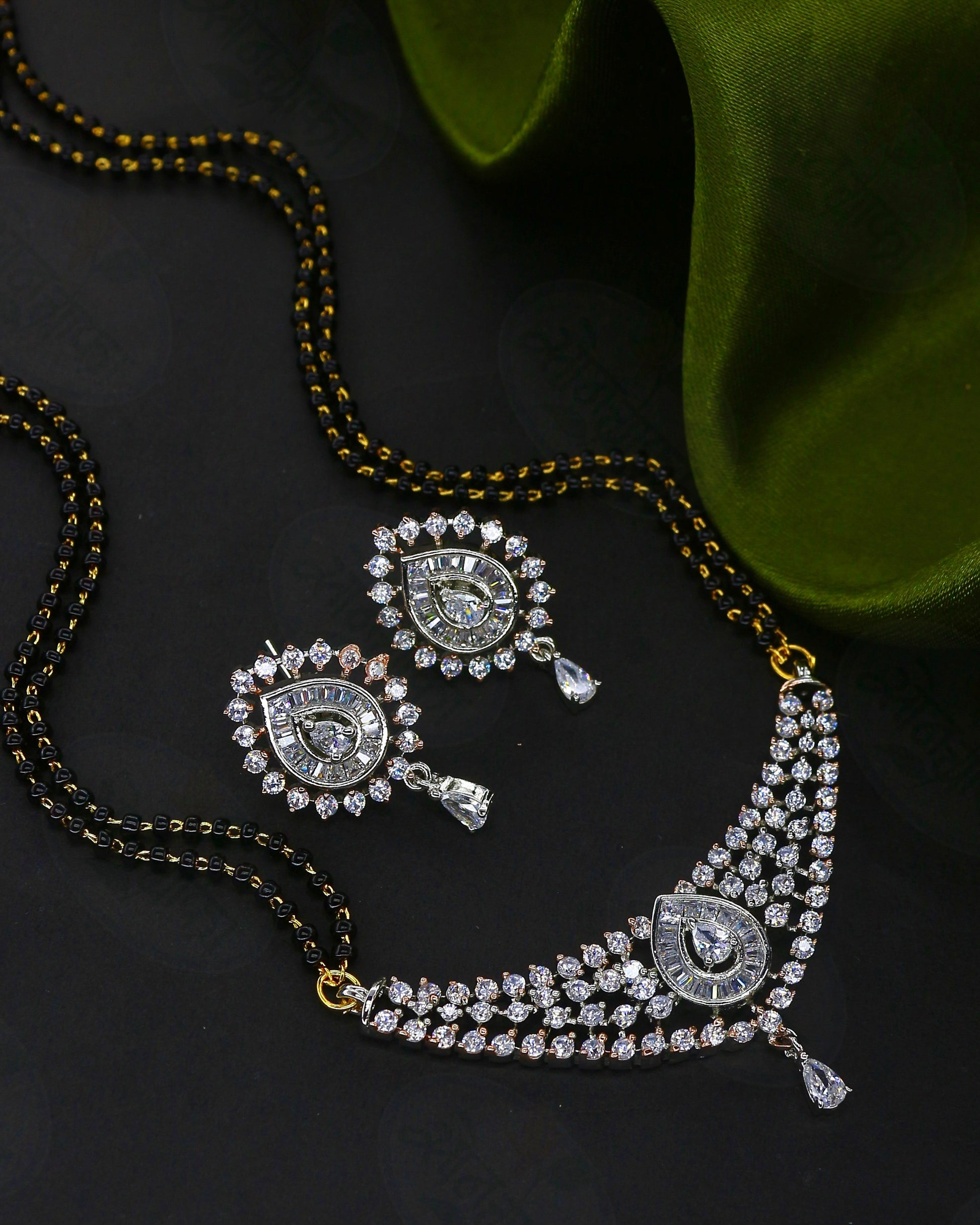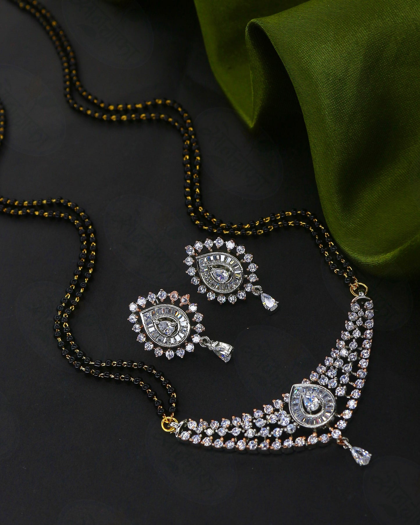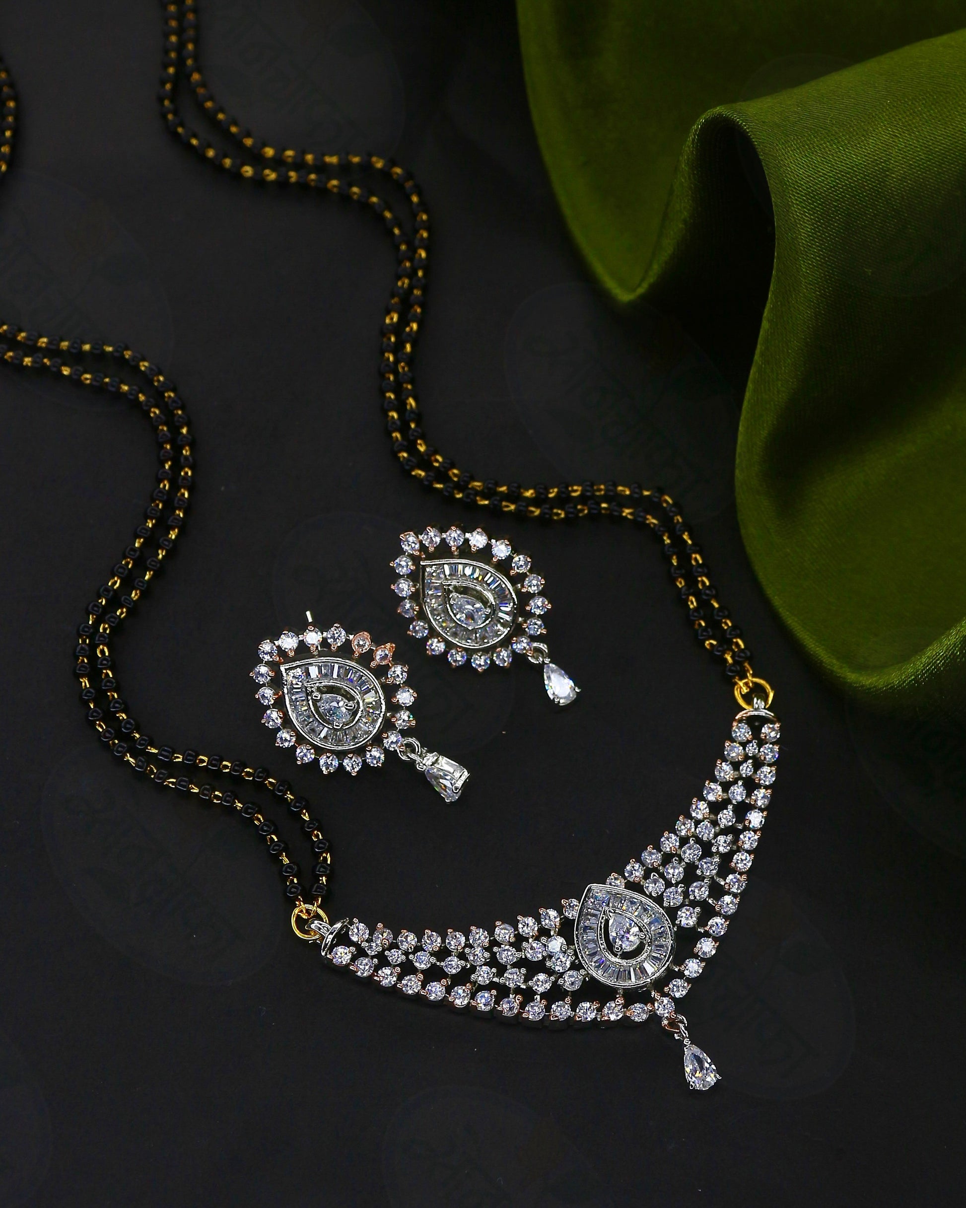 Buy something stylish for yourself in the form of this adorable mangalsutra from Sonchafa Jewellery. It is studded with sparkling stones and feature wonderful design. This mangalsutra is made from metal and ensures high durability. It has attachment of double layers of black beaded chain.