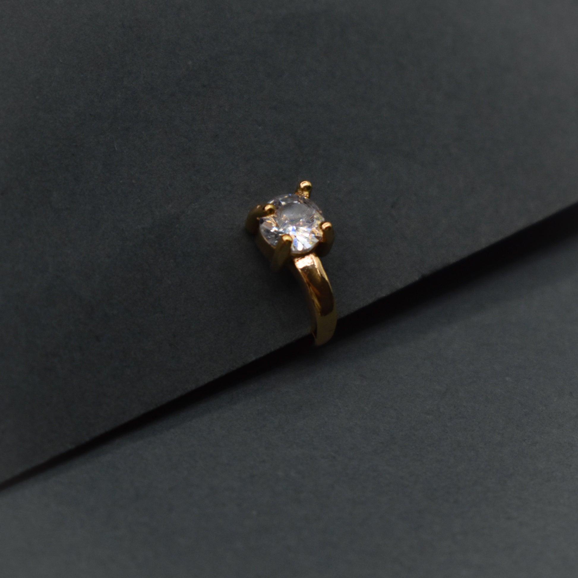 Stylish square designer nose pin form sonchafa Jewellery which is perfectly match our traditional look. It is styled with studded white stone & made from metal and ensures skin-friendliness.