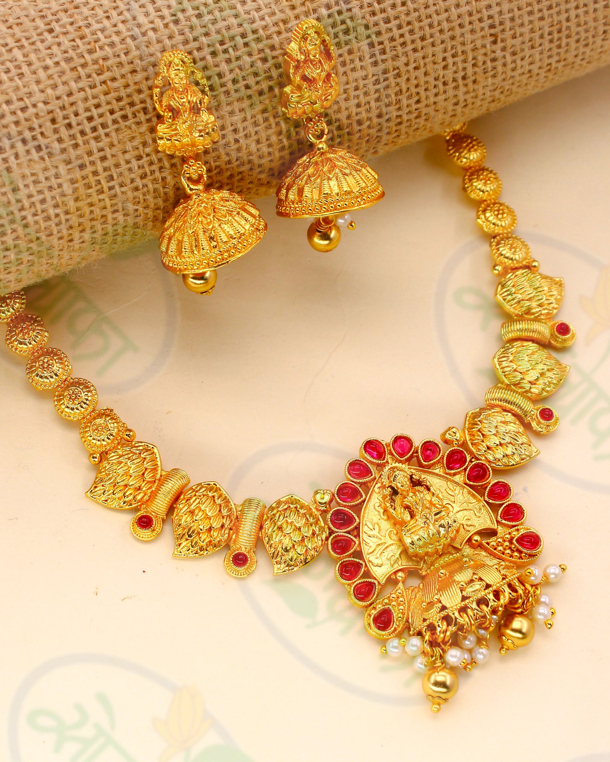 Take a look at this beautiful necklace set from Sonchafa Jewellery for your traditional look.