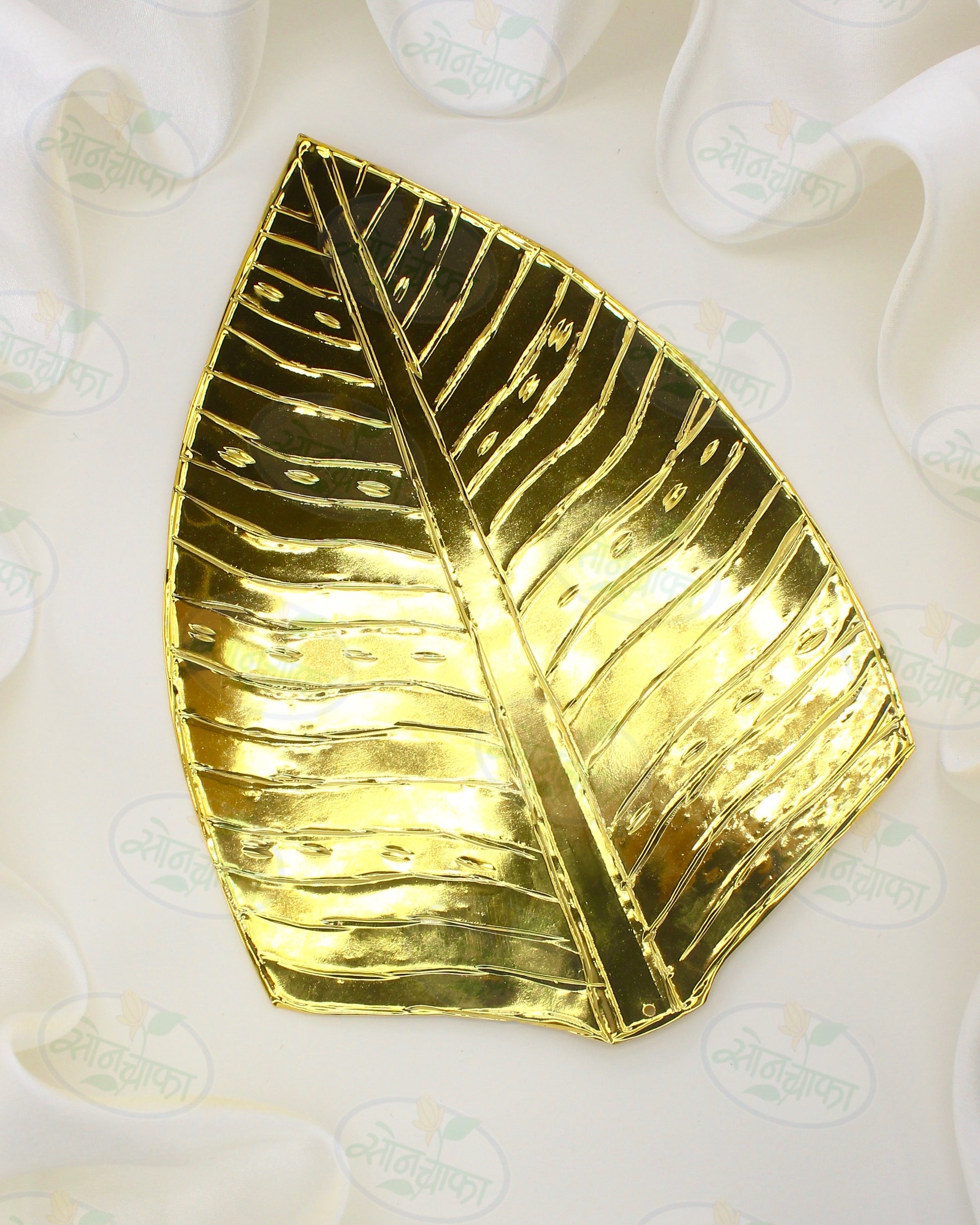 Give a distinct look to your Ganesha decoration by adding this beautiful 'ganpati Paan' from Sonchafa Jewellery. It is crafted from golden finish metal and ensures high durability.