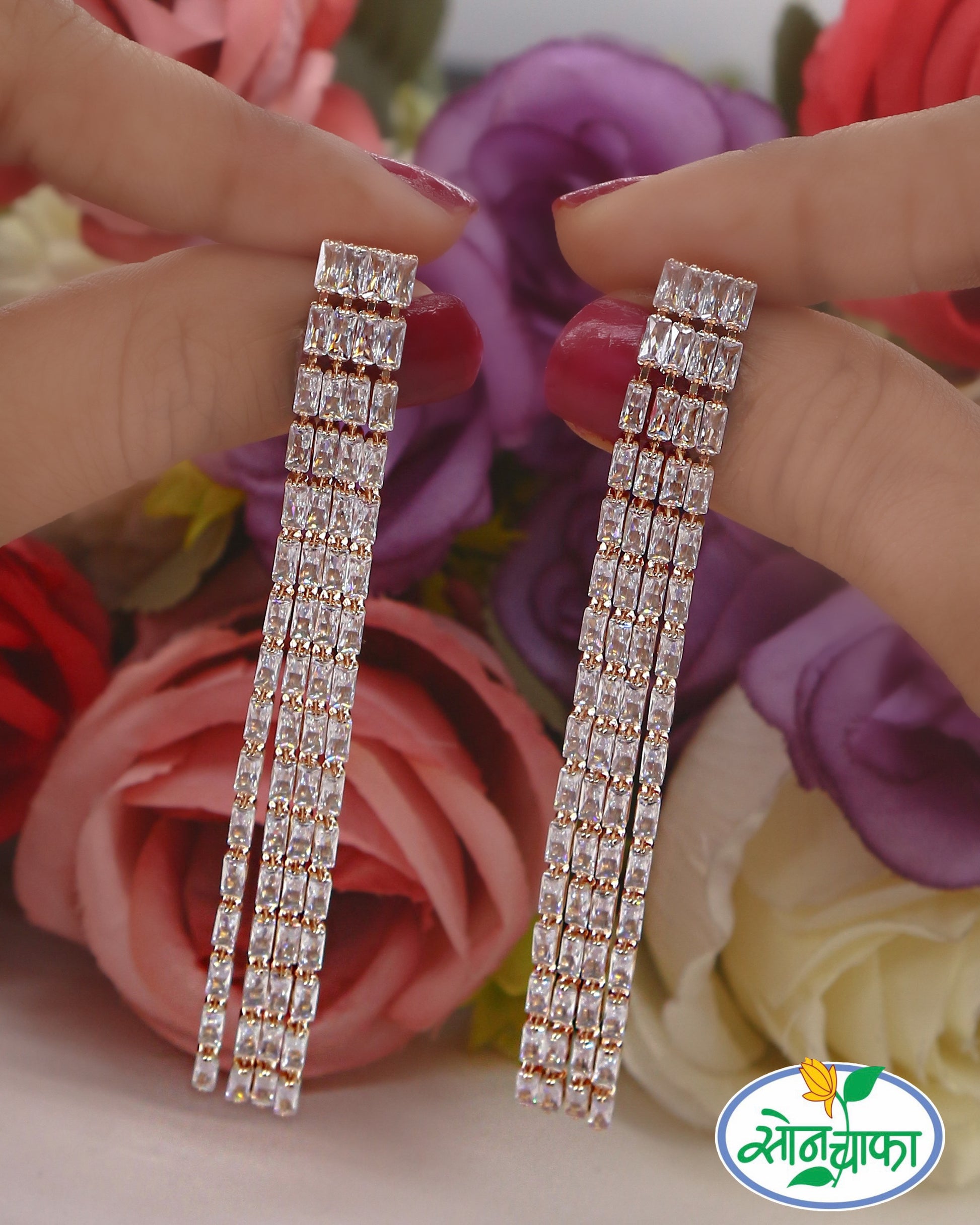 Look gorgeous by wearing this pair of square shape appealing earrings which are perfect blend of class and elegance. These studs are encrusted with white dia diamond stone and made from golden finish metal. These earrings are good in quality and ensure high durability.