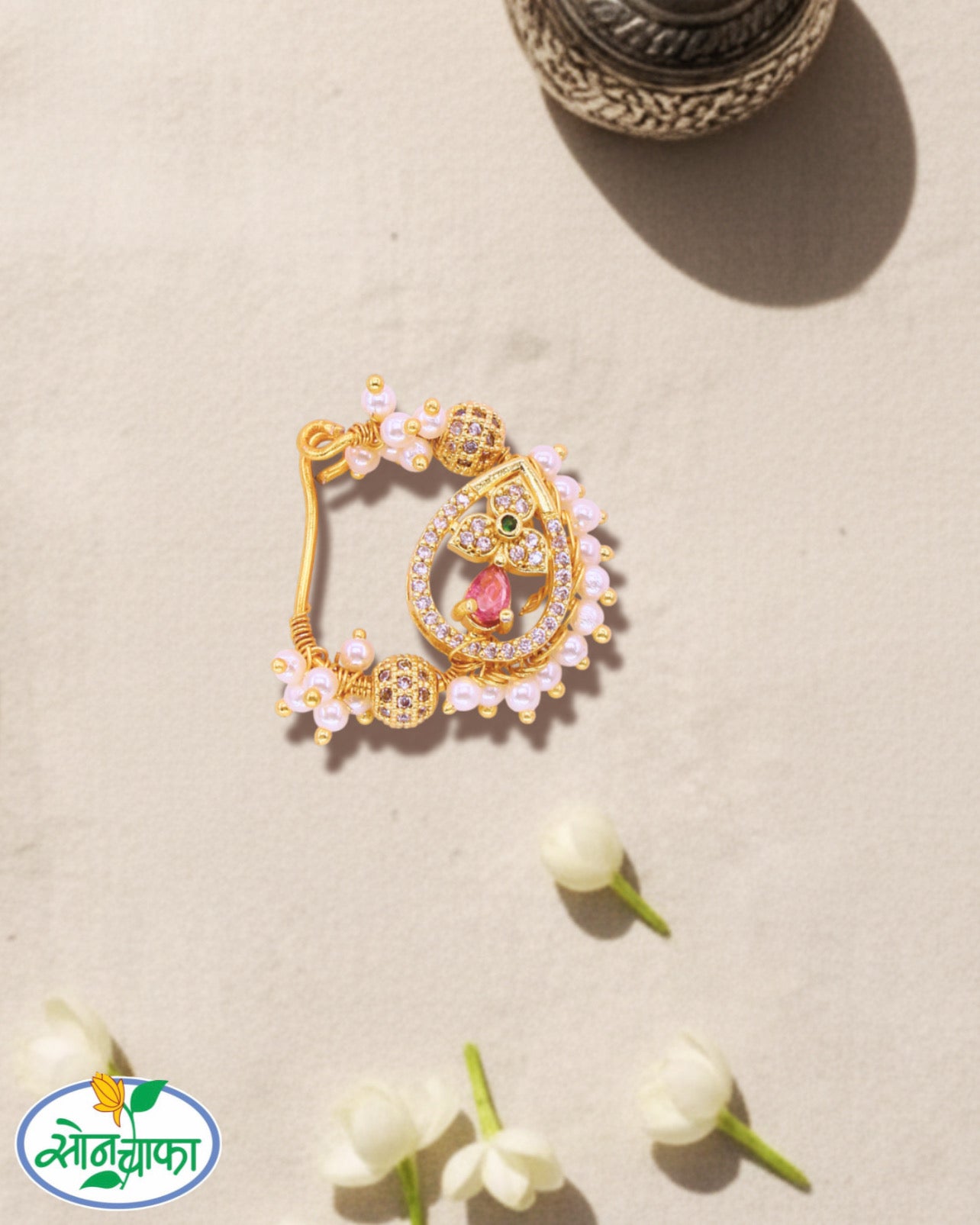 Sonchafa Jewellers offers this beautiful pink stone nath for women or girl who love to wear traditional accessory.