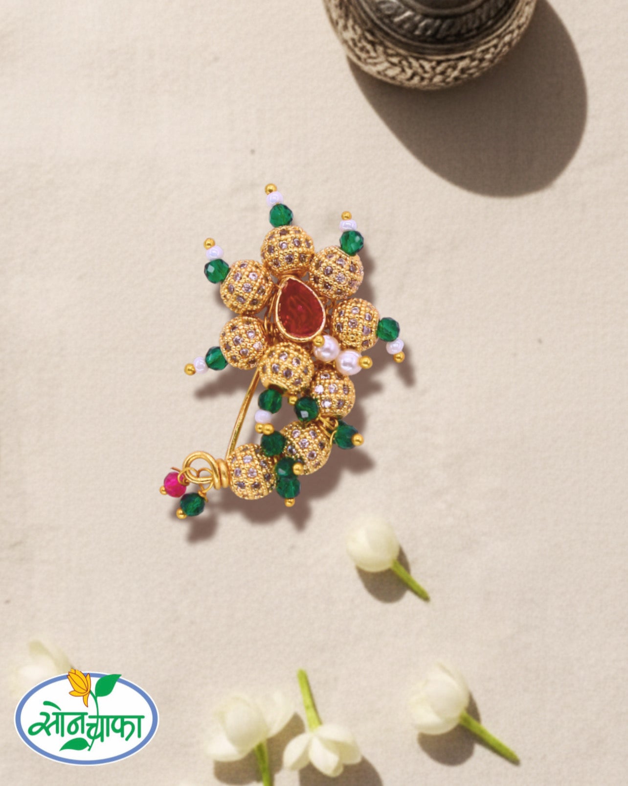 Sonchafa Jewellers offers this beautiful pink stone nath for women or girl who love to wear traditional accessory.