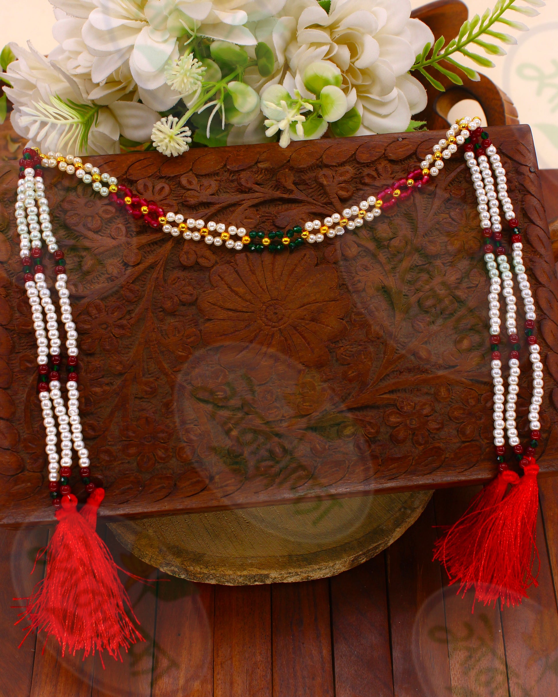 Complete your festive look by clubbing this adorable Mundavalya with your occasional costume.