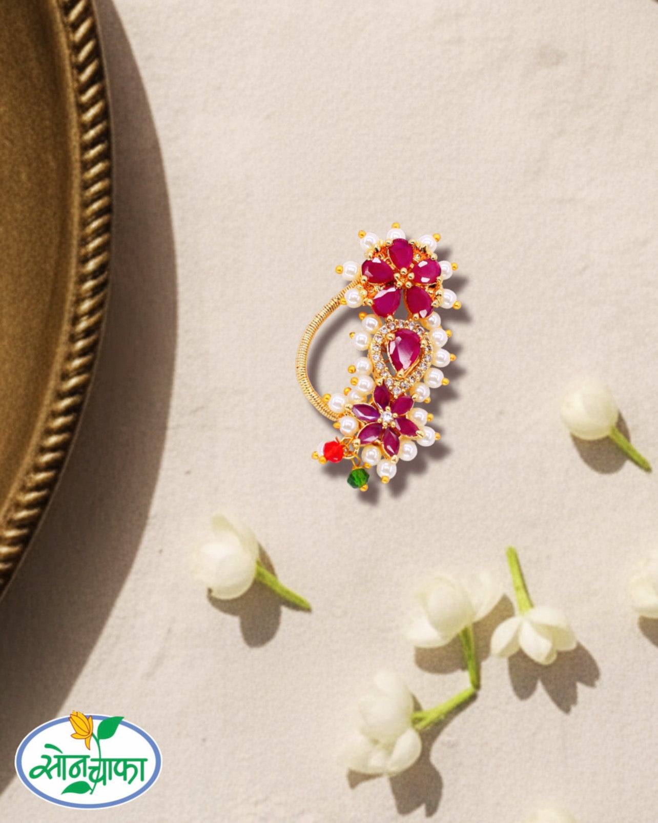 Sonchafa Jewellers offers this beautiful pink stone nath for women or girl who love to wear traditional accessory.