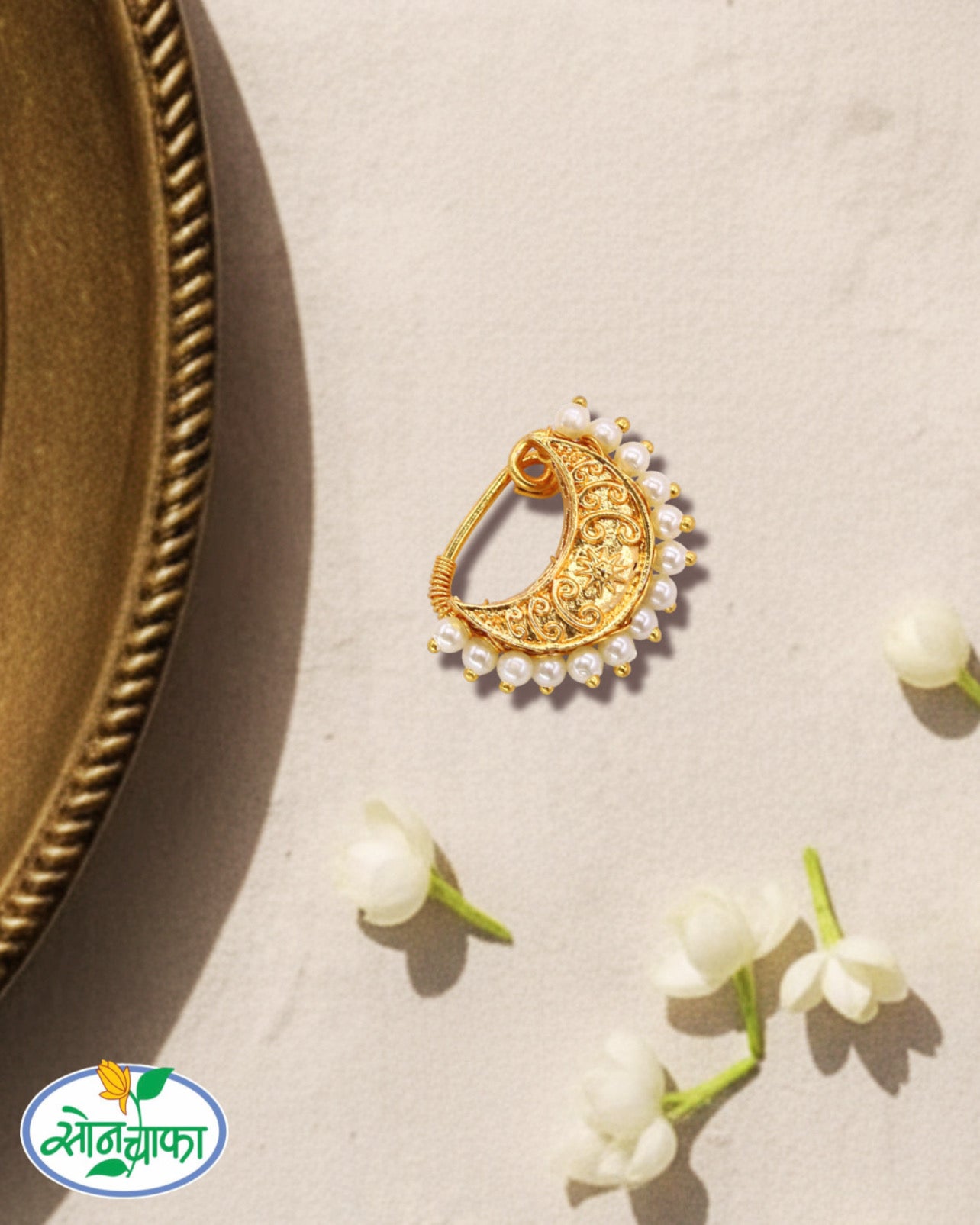 Sonchafa Jewellers offers this beautiful pink stone nath for women or girl who love to wear traditional accessory.