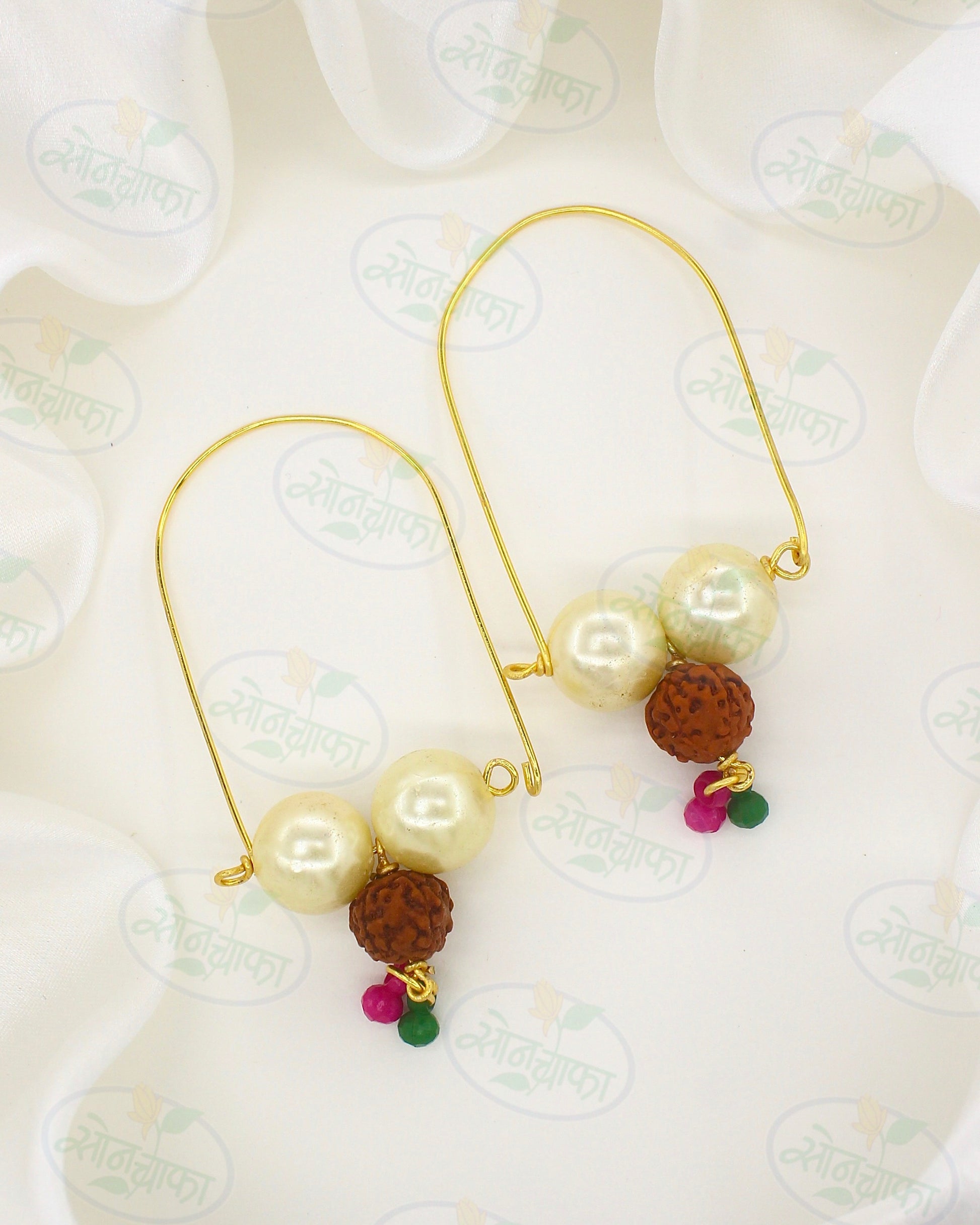 Sonchafa Jewellery brings to you this pearl beaded bali for decorate your Gajanana. It is studded with pink, white, green stone. This Ganpati Bali is woven with pearl beads in tar. It is made from superior quality golden finish metal.