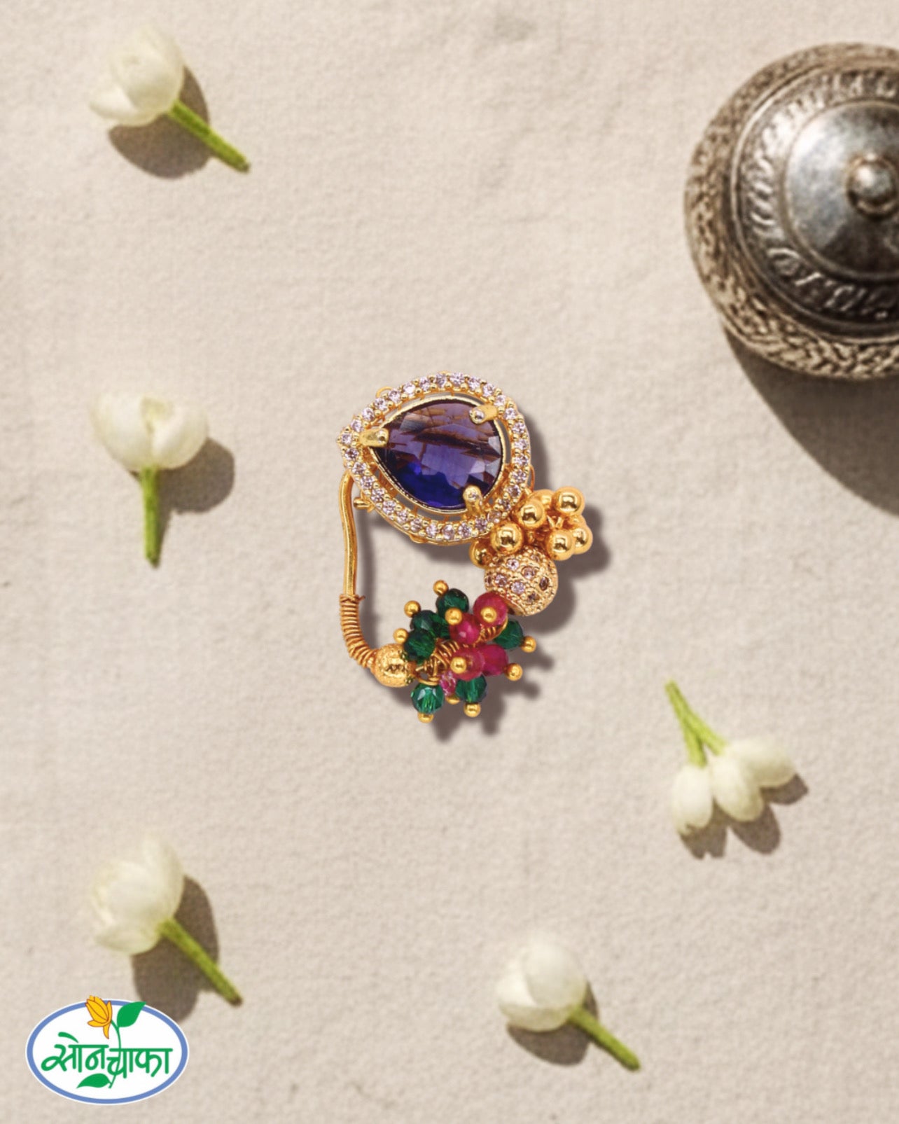 Sonchafa Jewellers offers this beautiful pink stone nath for women or girl who love to wear traditional accessory.