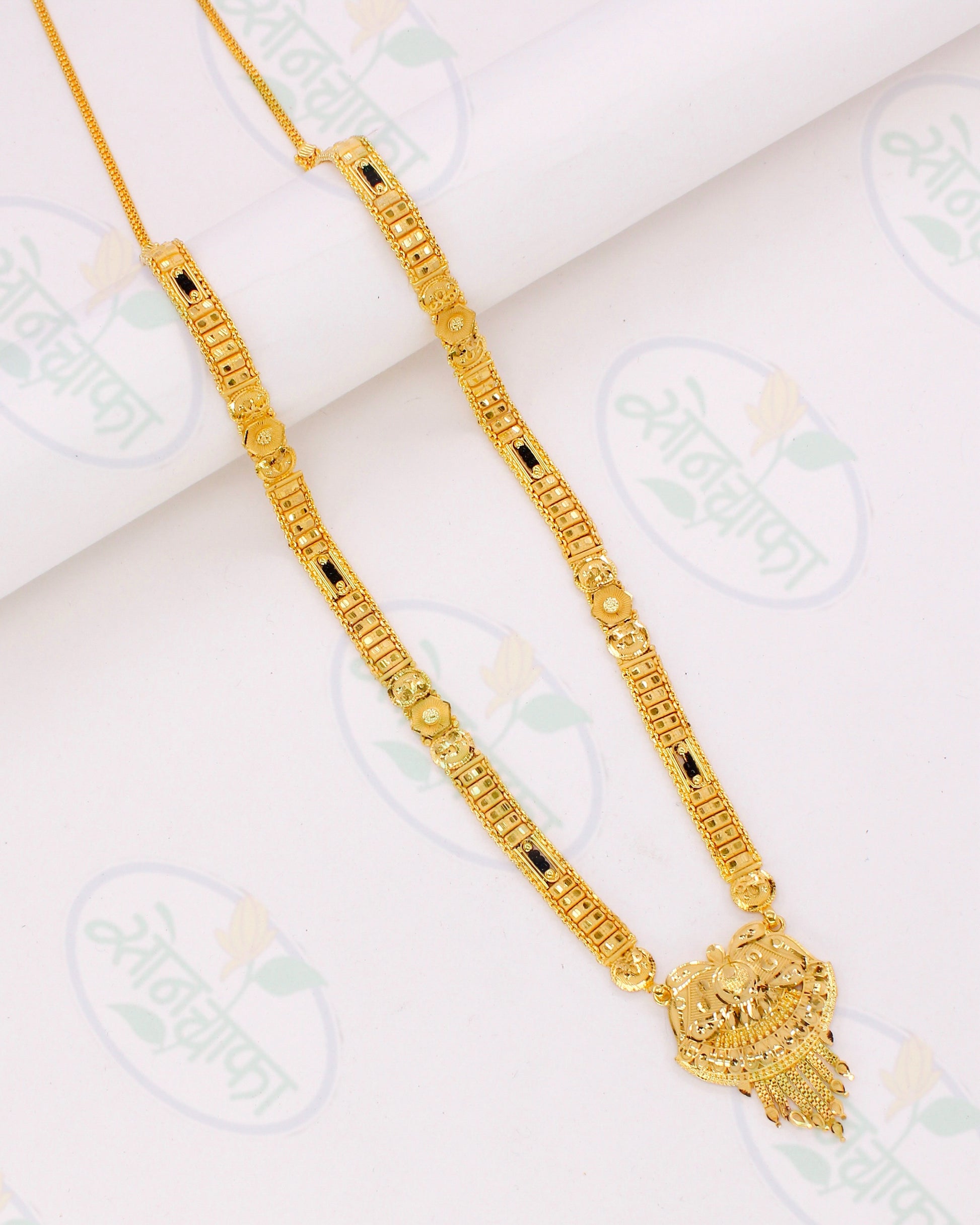 Floral designer pendant gold plated Mangalsutra from Sonchafa Jewellery will appeal to you at very first look. This mangalsutra is superior in quality and will be your fashion companion for