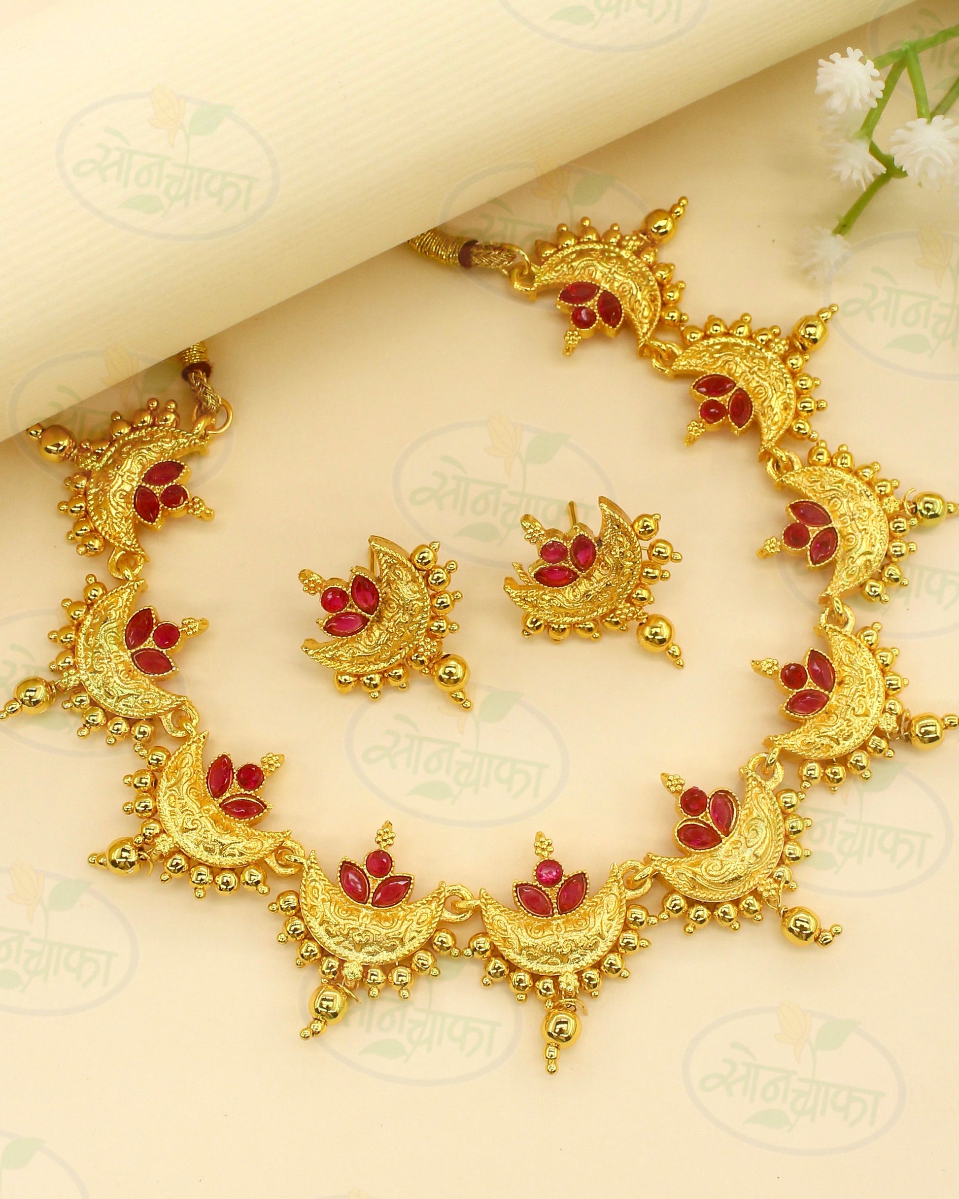 Attractive designer mahalaxmi necklace from Sonchafa Jewellery will help you to complete your traditional look.