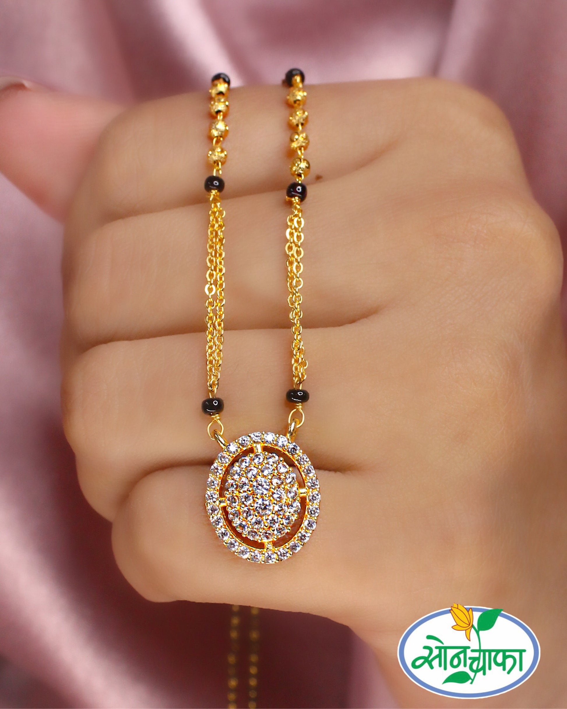 Buy something stylish for yourself in the form of this adorable mangalsutra from Sonchafa Jewellery. It is studded with sparkling stones and feature wonderful design. This mangalsutra is made from metal and ensures high durability. It has attachment of double layers of black beaded chain.