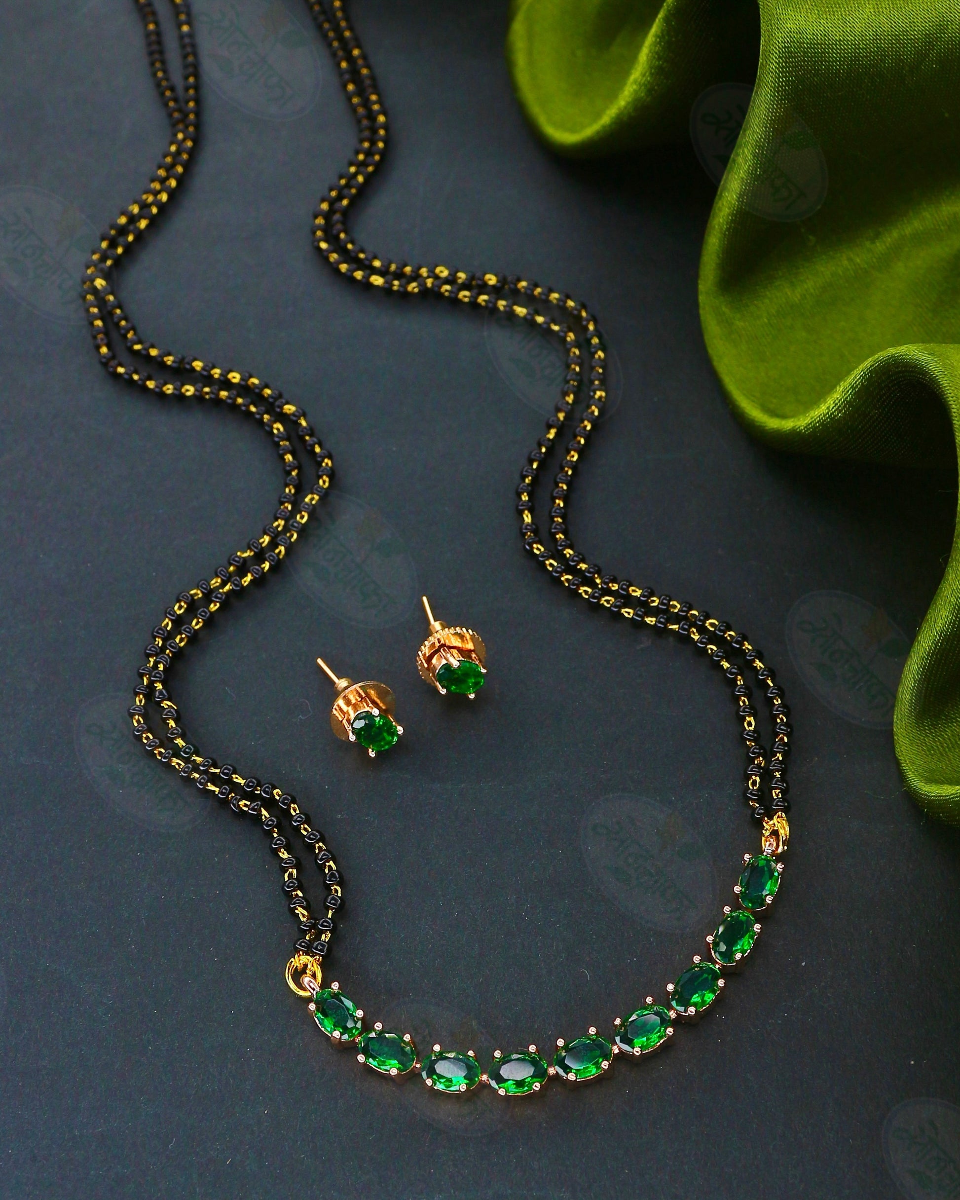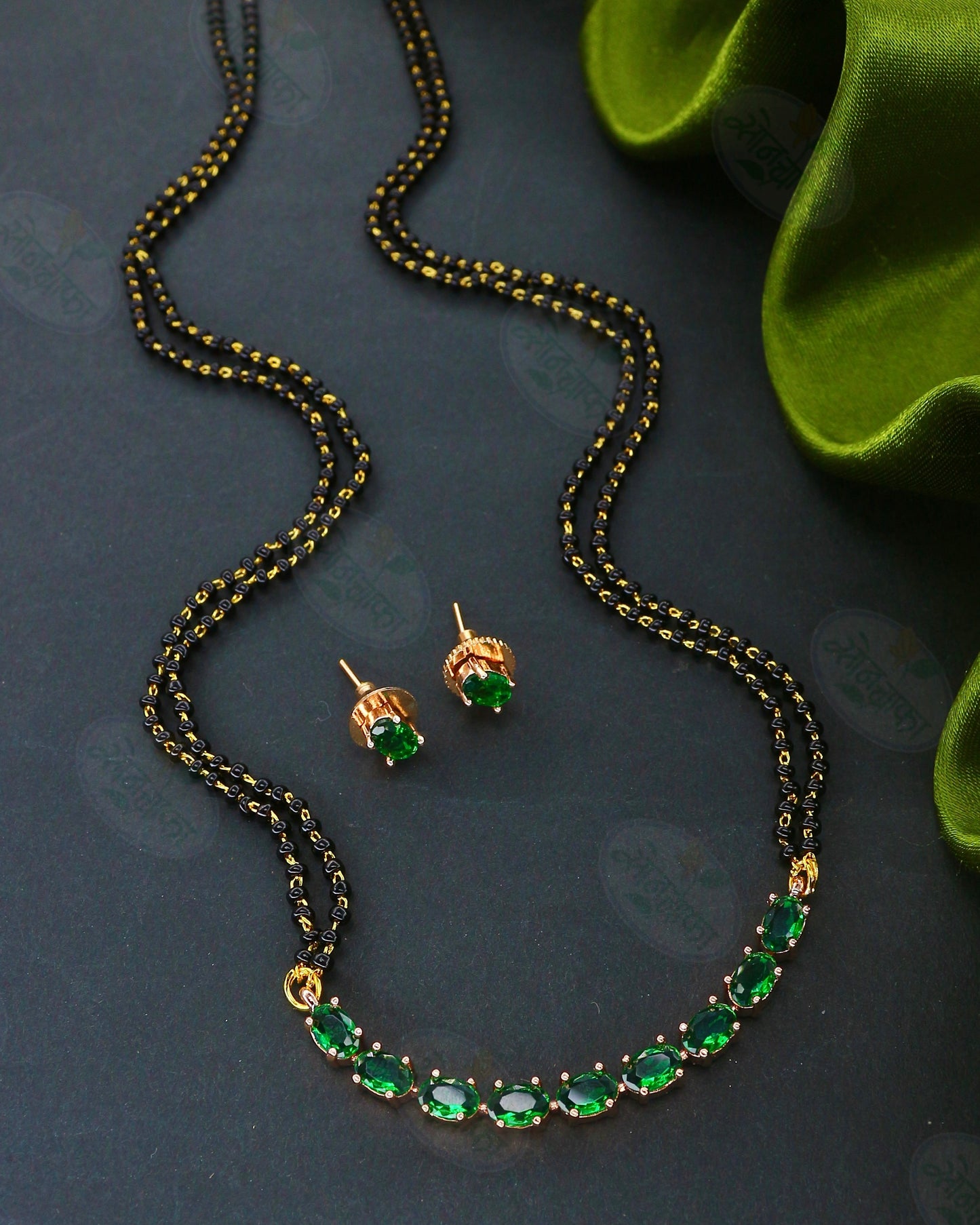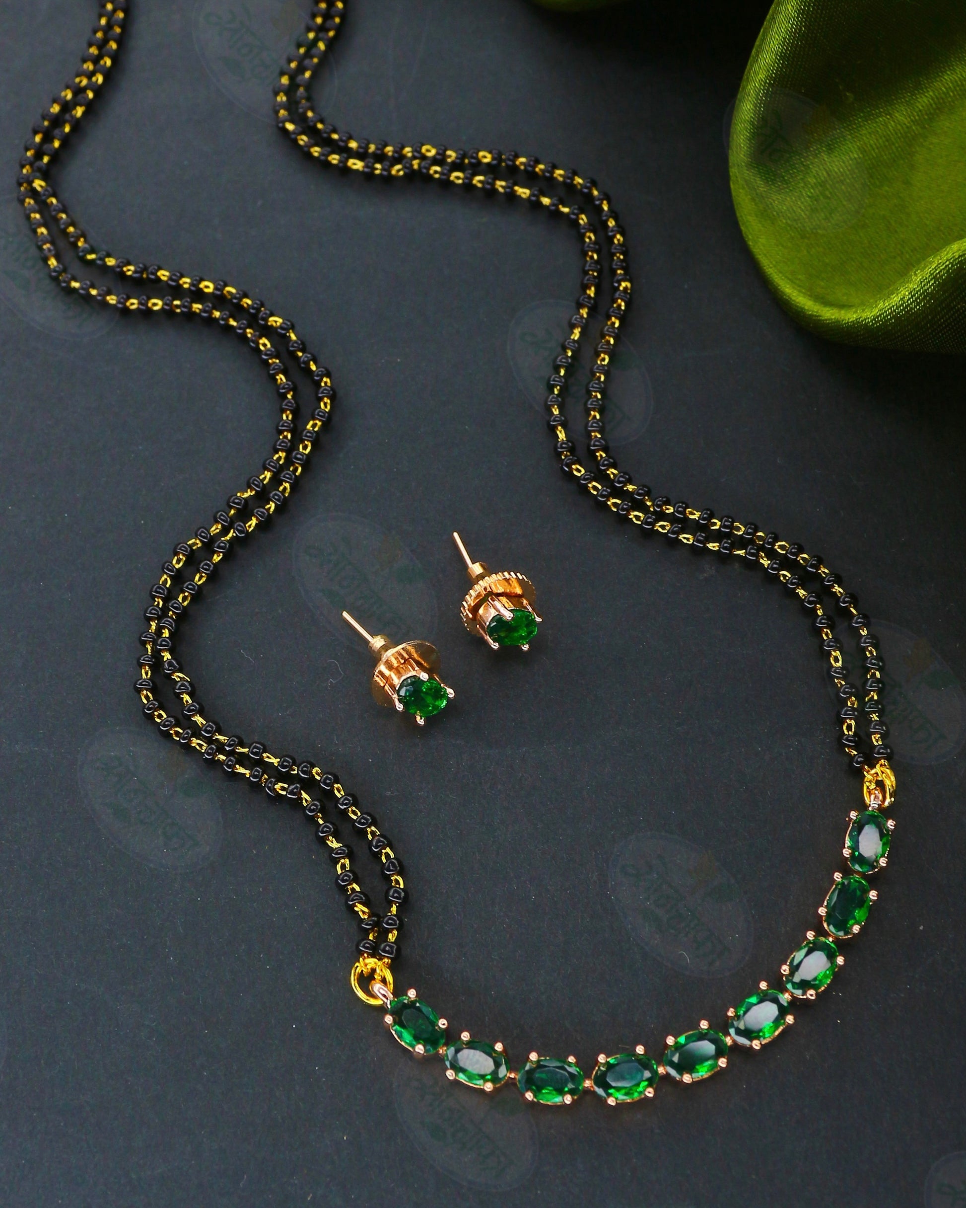 Buy something stylish for yourself in the form of this adorable mangalsutra from Sonchafa Jewellery. It is studded with sparkling stones and feature wonderful design. This mangalsutra is made from metal and ensures high durability. It has attachment of double layers of black beaded chain.