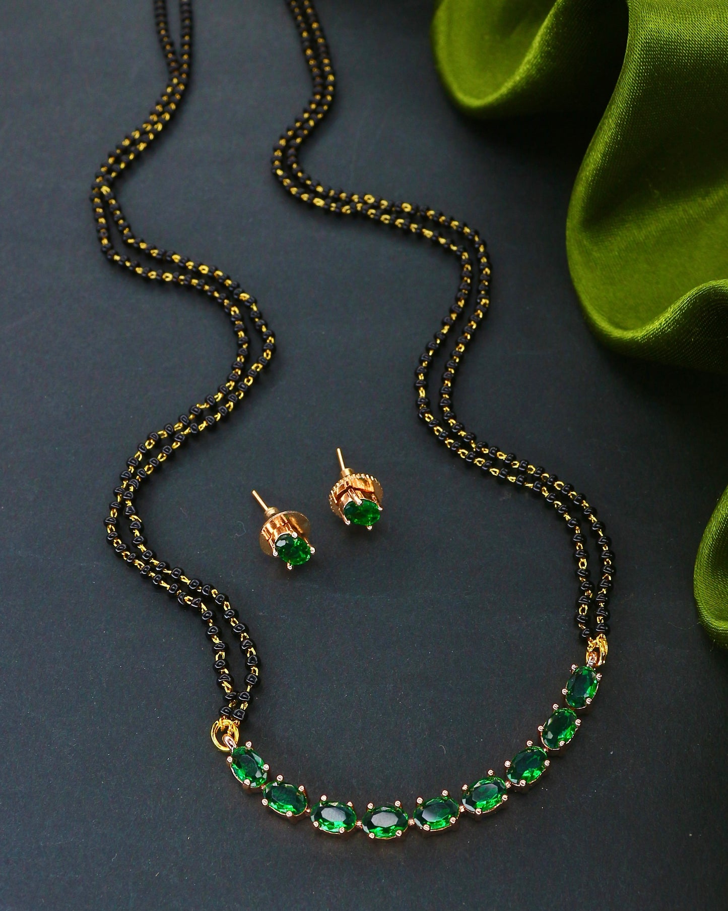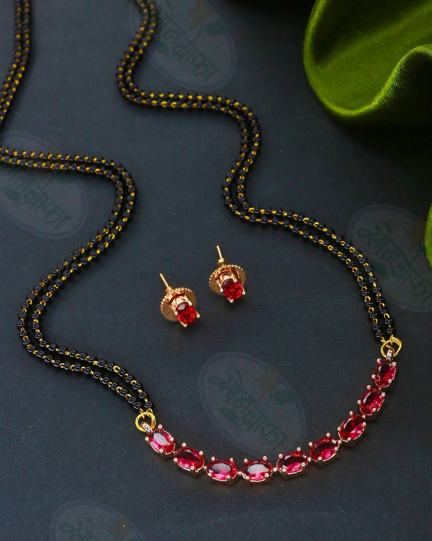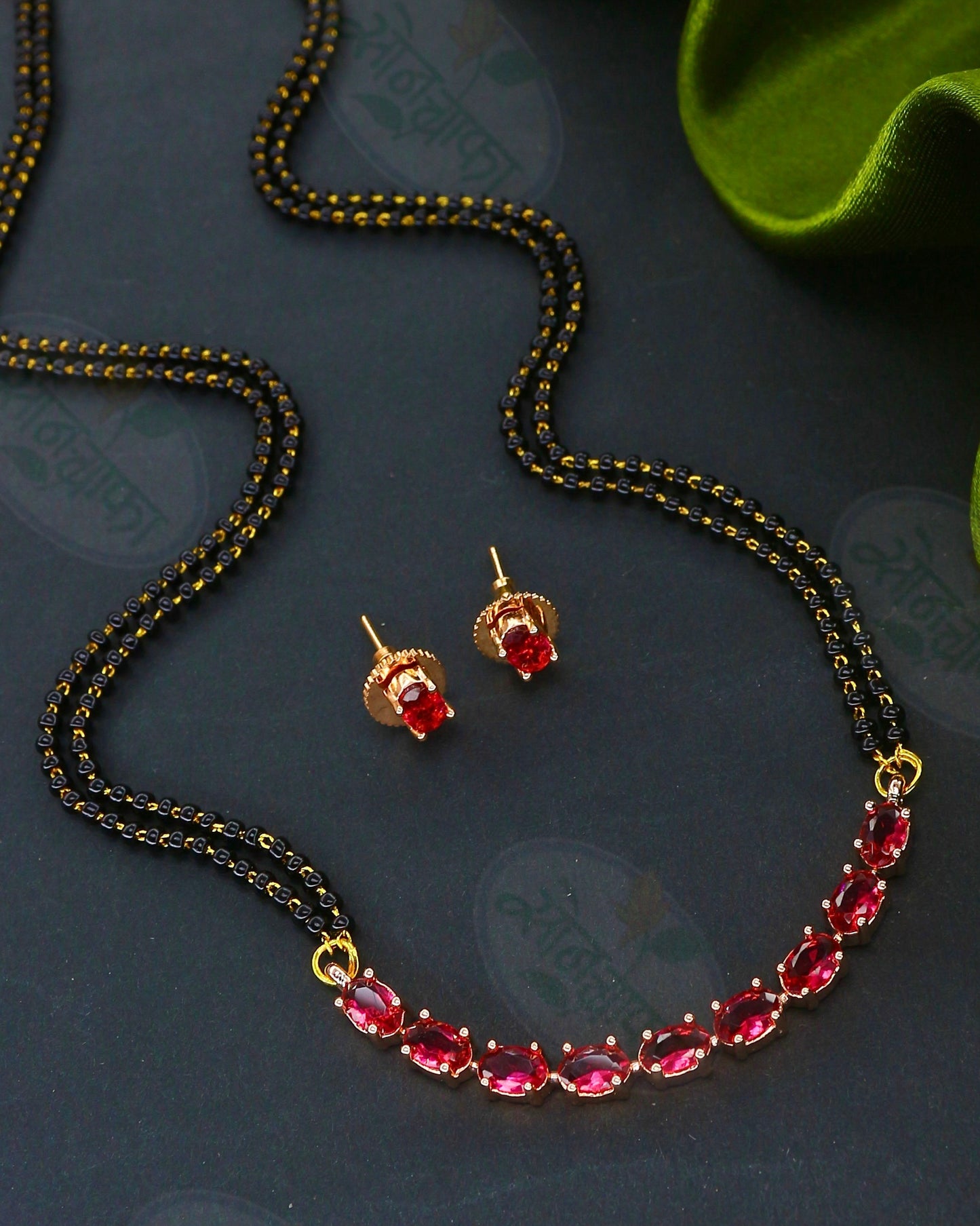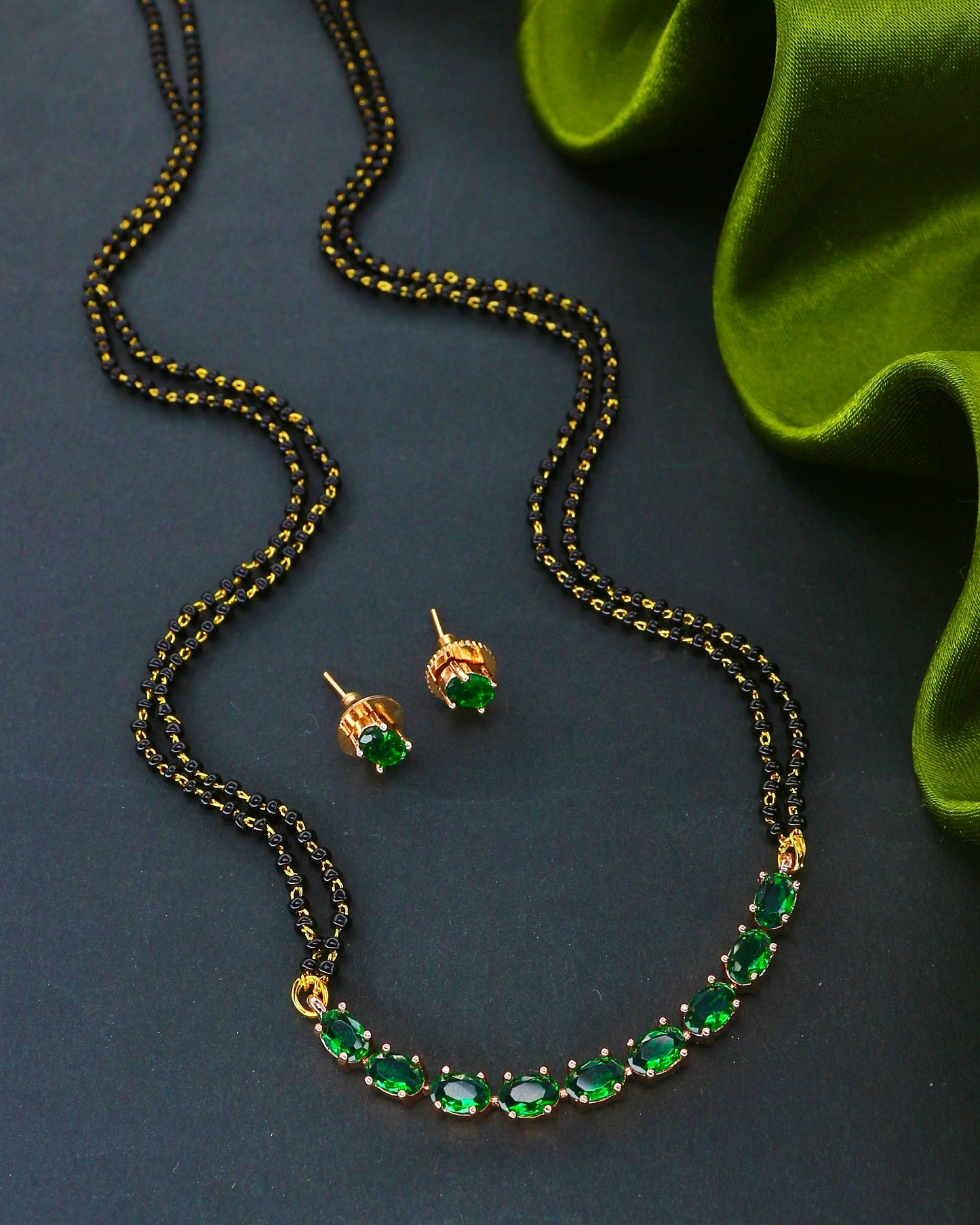 Buy something stylish for yourself in the form of this adorable mangalsutra from Sonchafa Jewellery. It is studded with sparkling stones and feature wonderful design. This mangalsutra is made from metal and ensures high durability. It has attachment of double layers of black beaded chain.