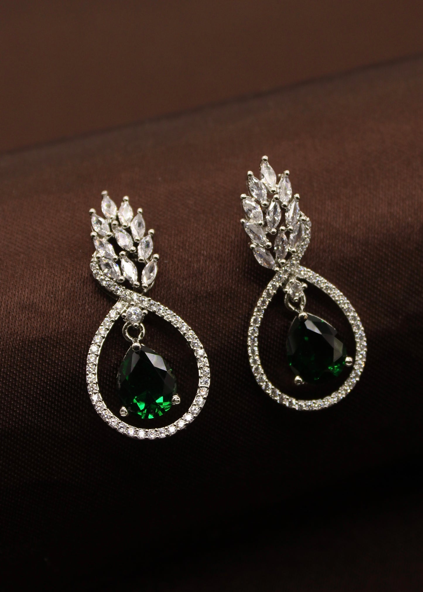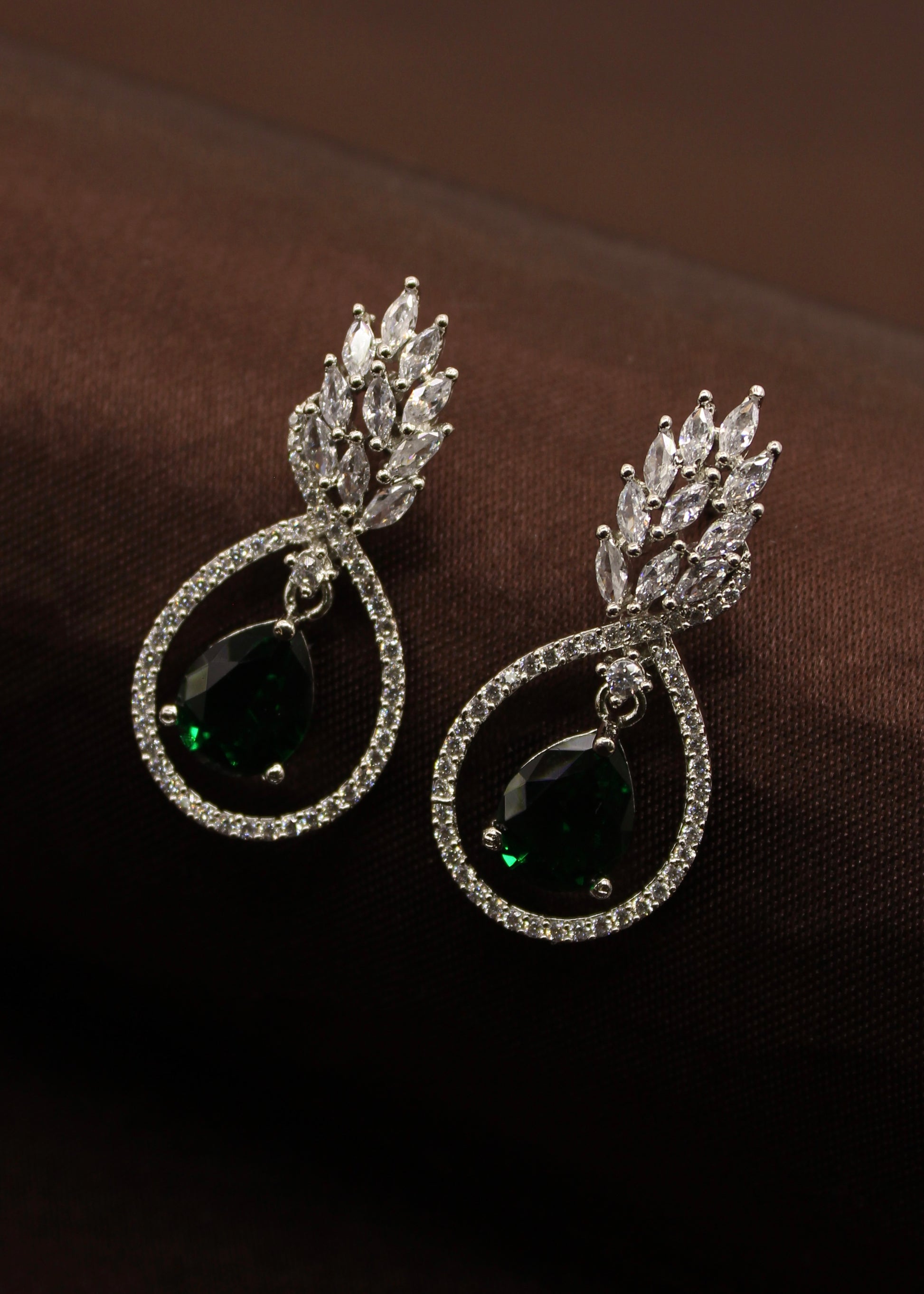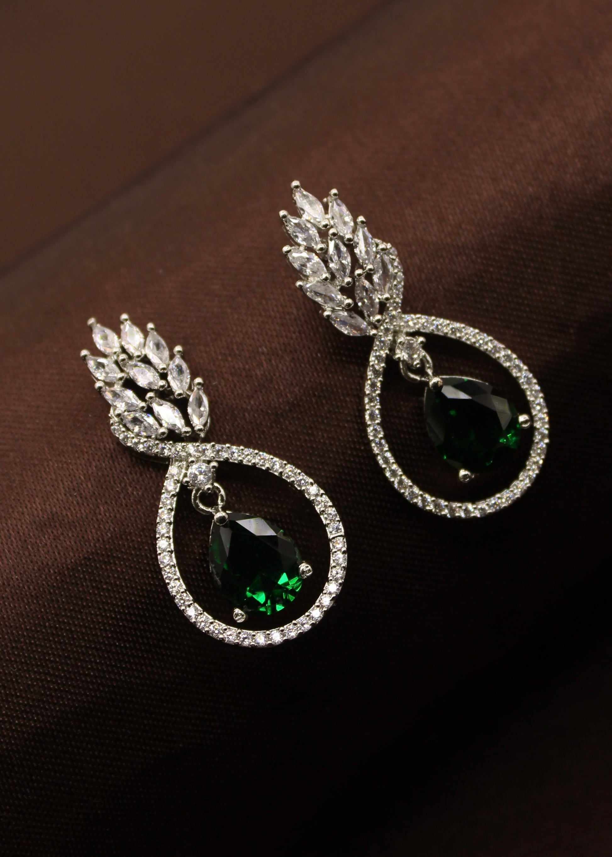 Add spark to your appearance by adorning this dazzling earrings with your matching costume. They are style with attractive studded green, white stone and fashioned from silver finish metal. These earrings are high in quality and rust-resistance as well. This jewellery will make you look gorgeous and make head turns towards you.