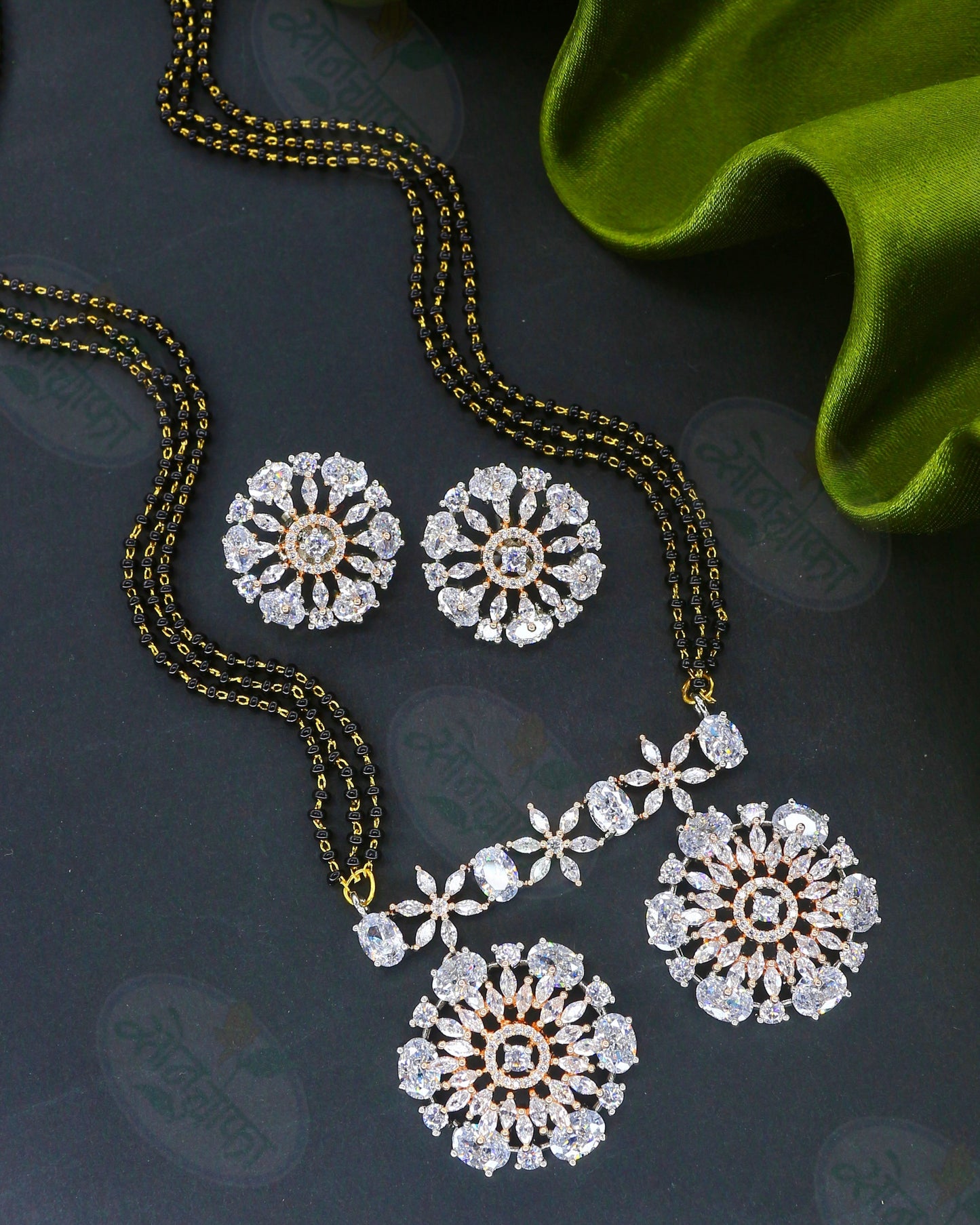 Buy something stylish for yourself in the form of this adorable mangalsutra from Sonchafa Jewellery. It is studded with sparkling stones and feature wonderful design. This mangalsutra is made from metal and ensures high durability. It has attachment of double layers of black beaded chain.
