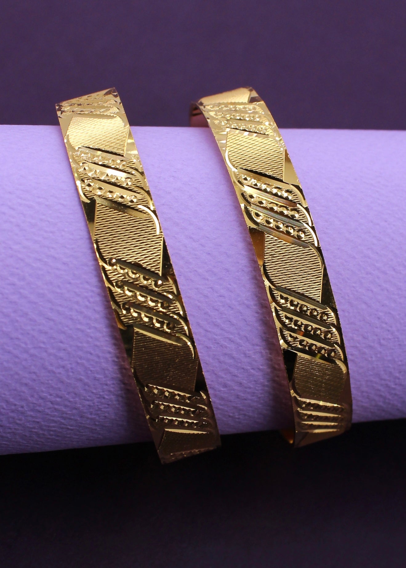 Get that perfect look by wearing these designer bangles with your traditional costumes. These bangles are fashioned from 1 gram gold plated metal. In addition these feature flawless carving design on golden surface and skin-friendly as well.