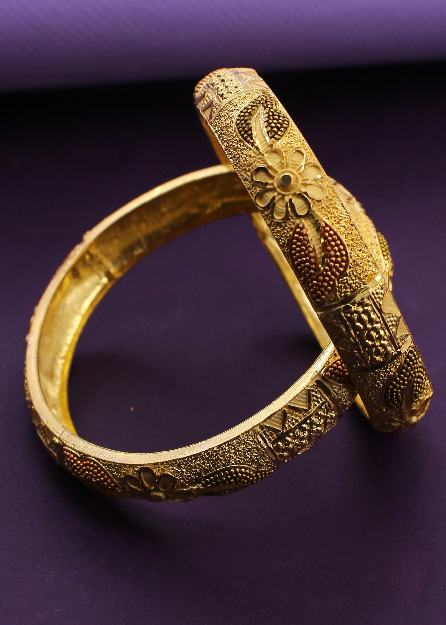 Adorn this graceful 1 Gram Gold plated floral bangles with your festive outfits for a truly classic look. .