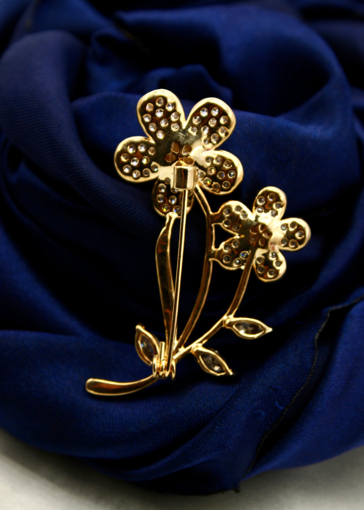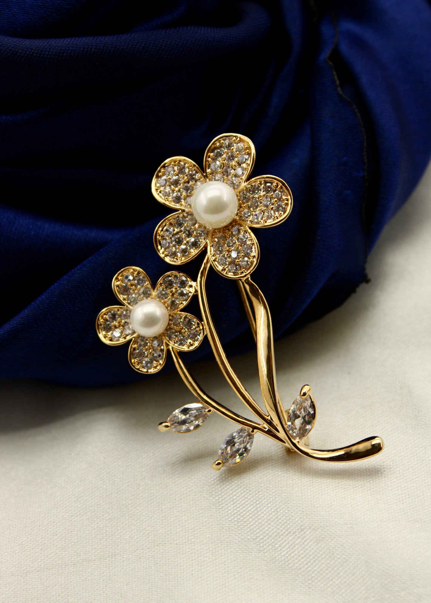 A very attractive floral saree pin is best pick for modern women of today from Sonchafa Jewellers. It is encrusted with white dia stones along with pearl beads and made from golden finish metal. It is long lasting and highly durable. Grab this saree pin and turn many heads towards you.