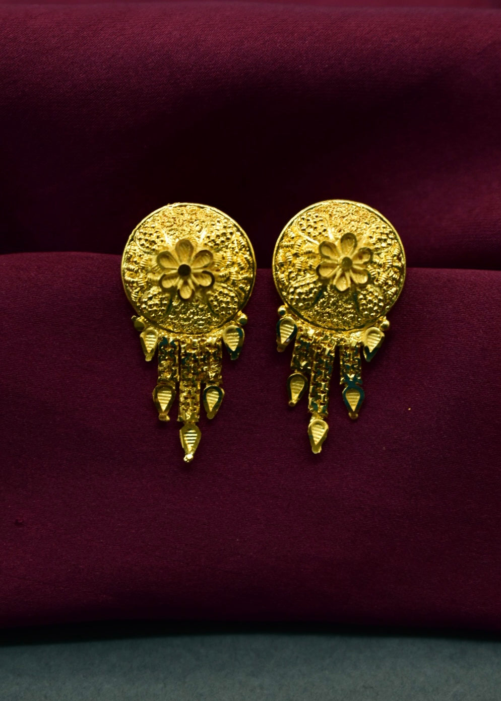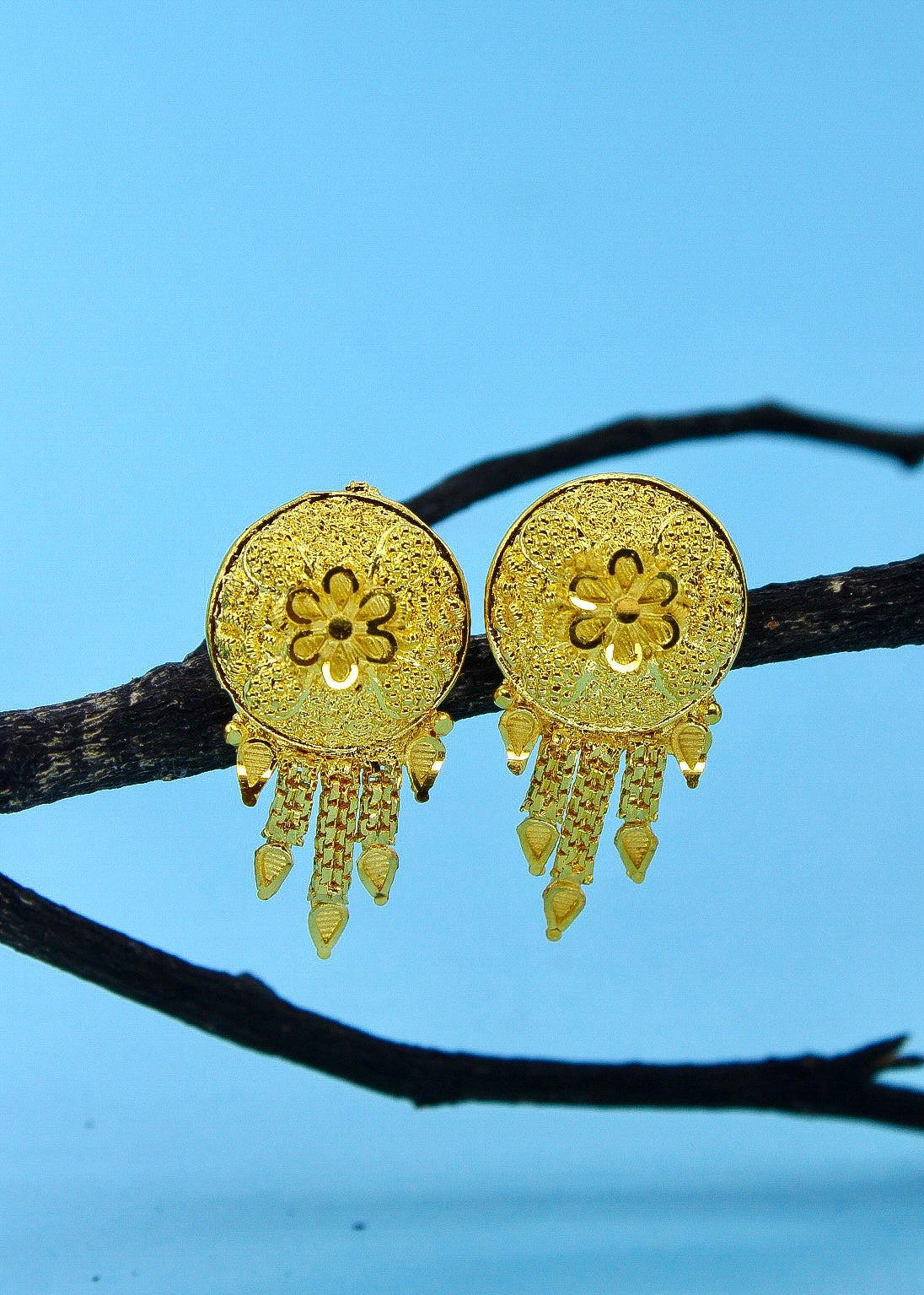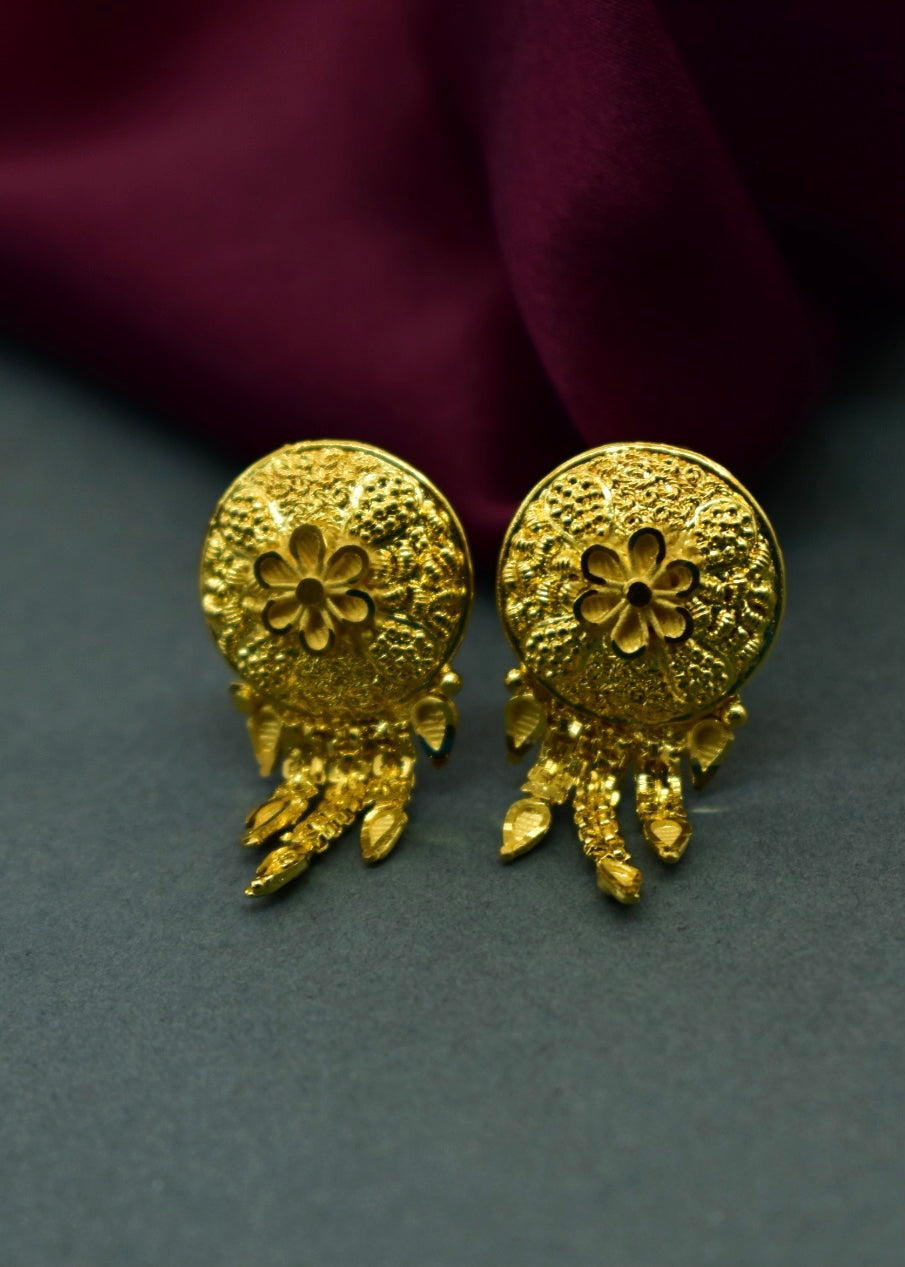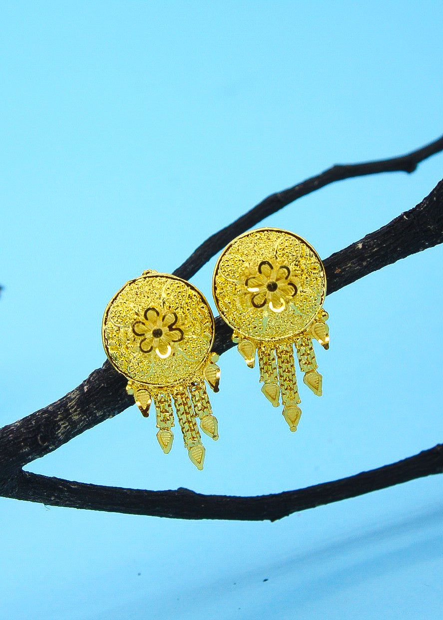 Wonderful flower inspired earrings from Sonchafa Jewellery is something which will make you look outstanding. It is embedded with gold stone and made from 1 gram gold plated metal. This wonderful earrings has golden beads droplets for added attraction. It is superior in quality and will be your fashion companion for many years.