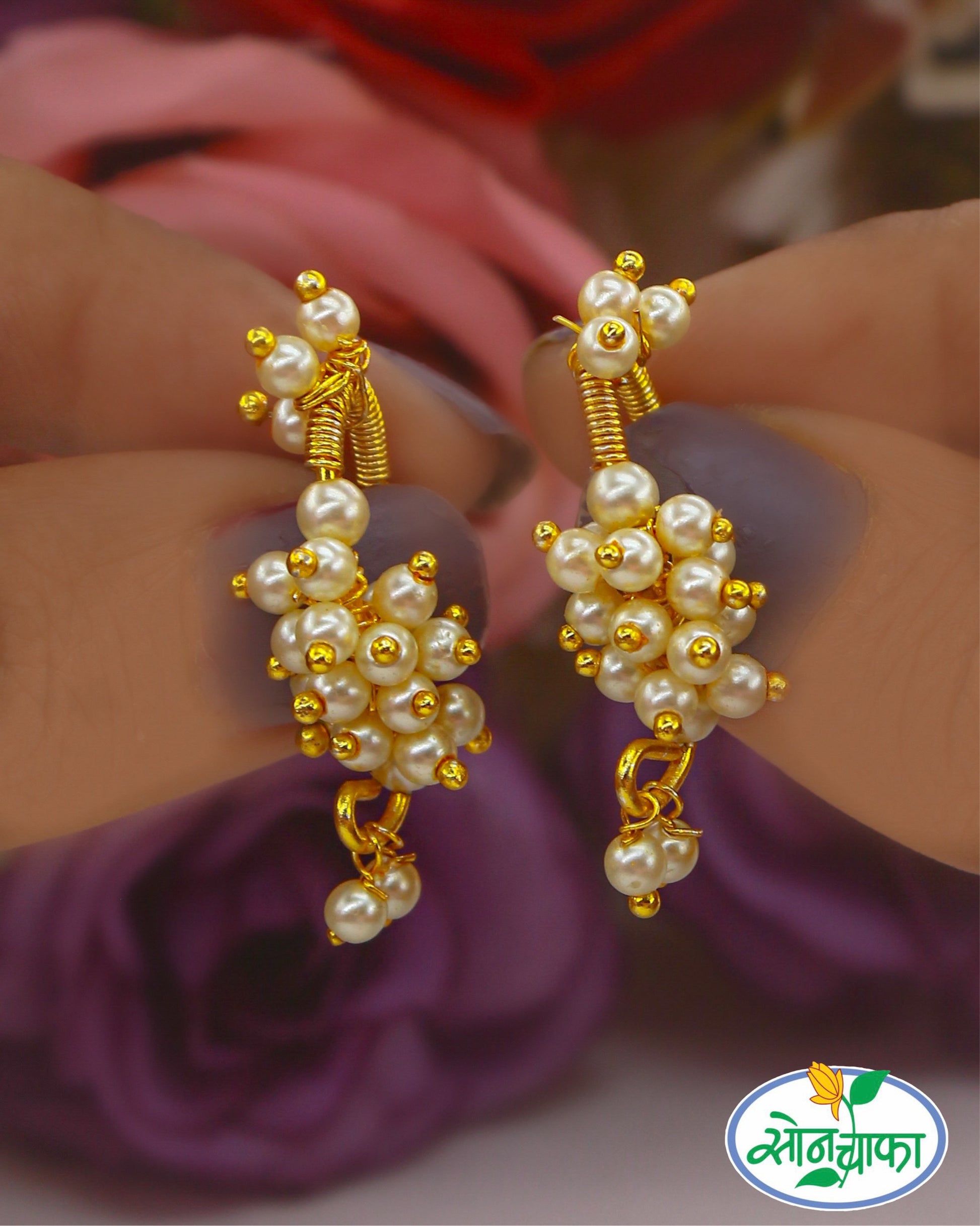 Sonchafa Jewellery offers this Dazzling pair of bugadi earrings at low price. These bugadi earrings are styled with pearl beads. They are crafted from superior quality metal and ensure high durability.