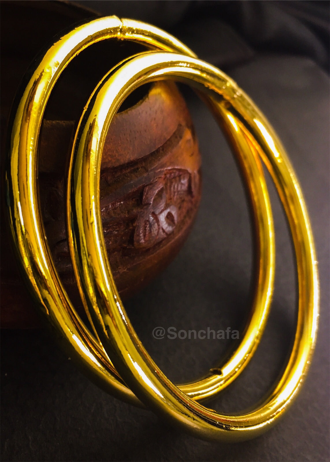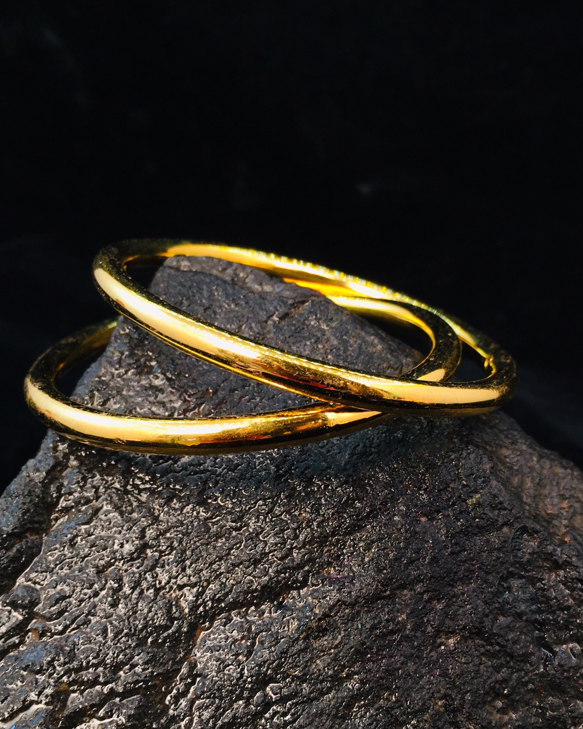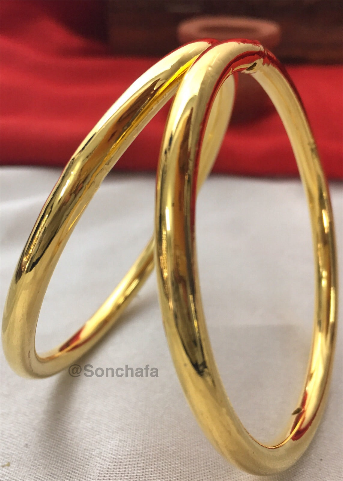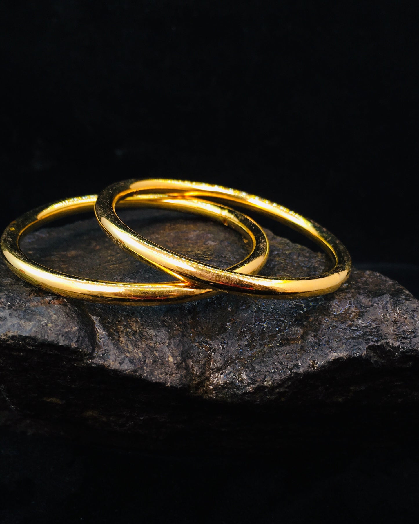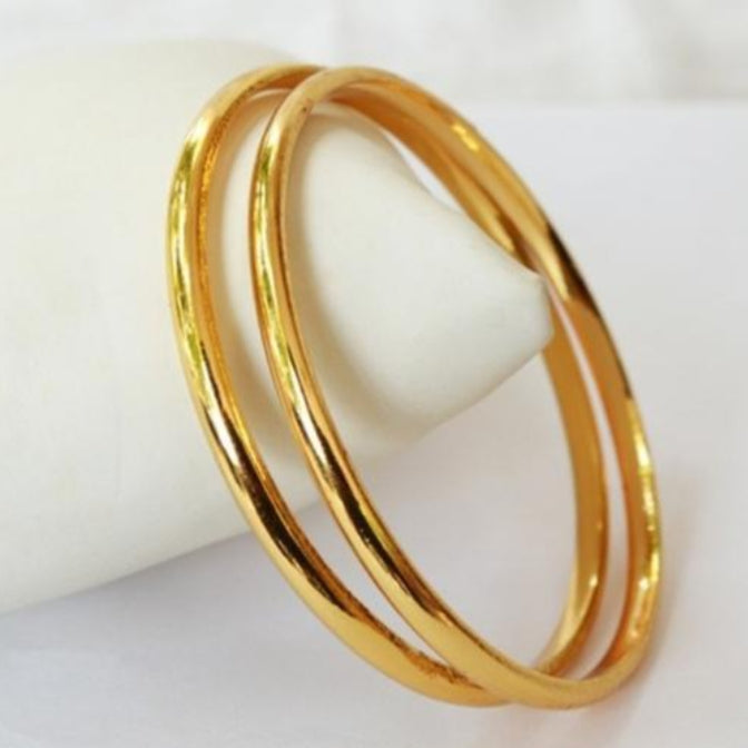 Adorn your wrist with this pair of 1 gram gold plated adorable bangles. These bangles are wonderfully woven with gold finish and made from metal. They are easy to wear.
