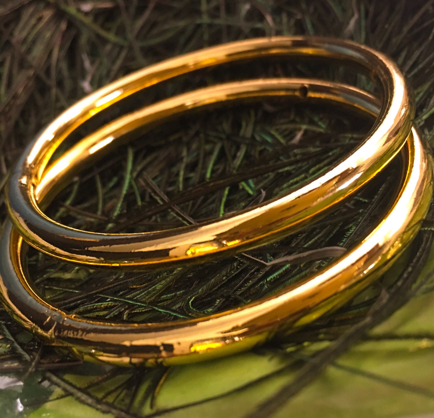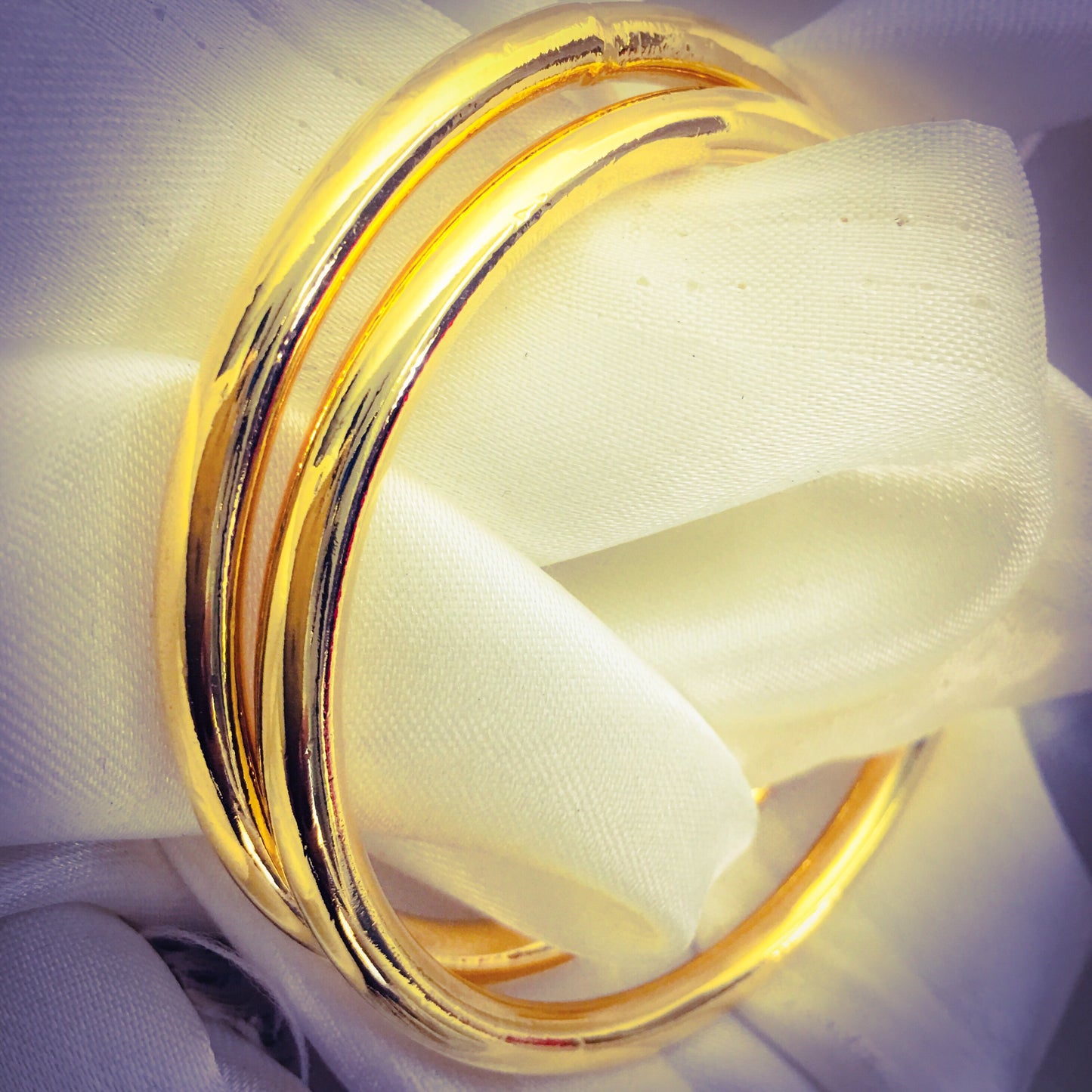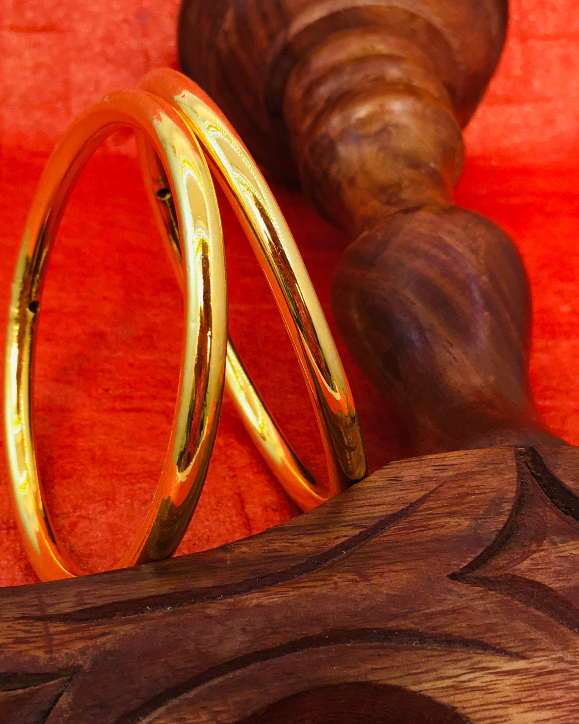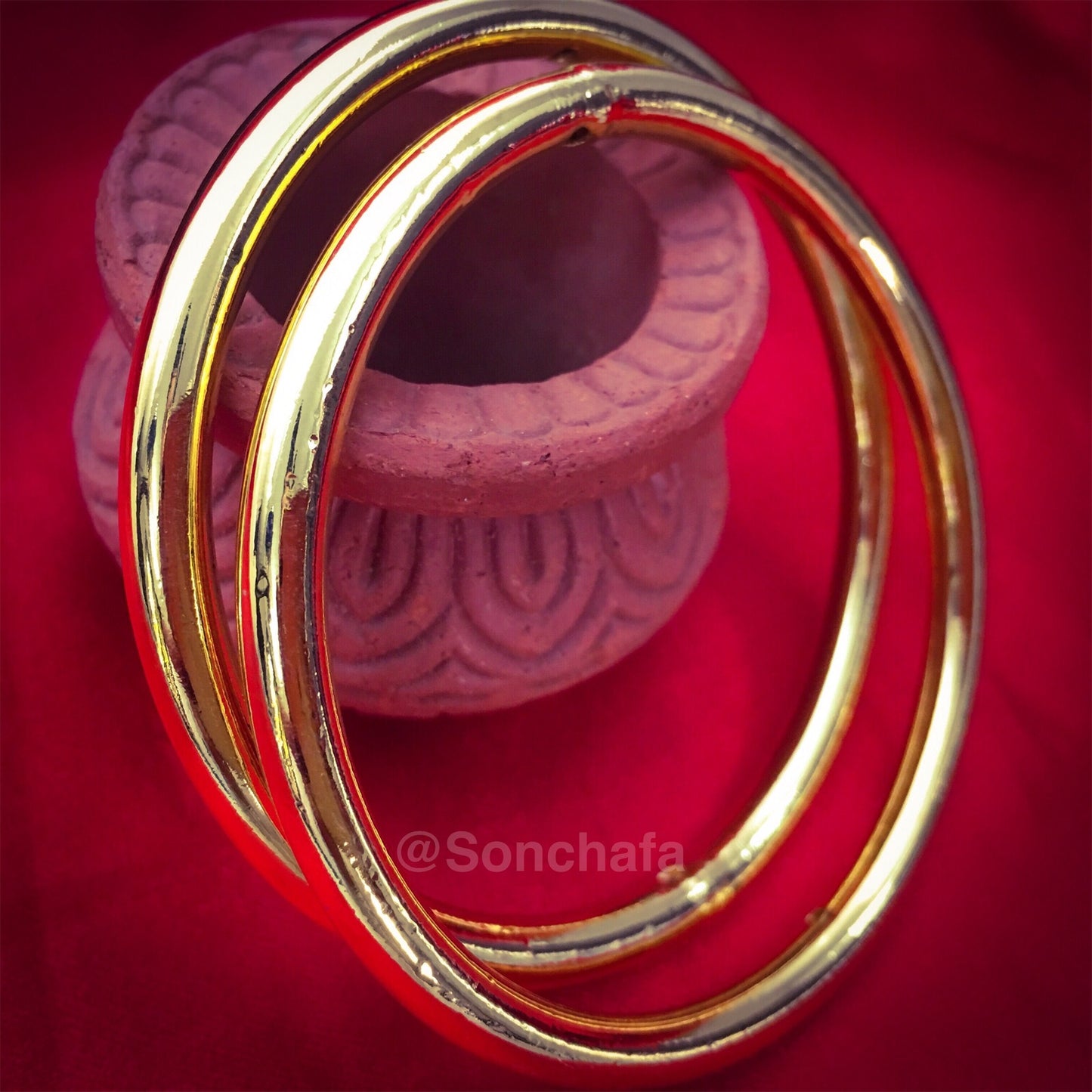 Adorn your wrist with this pair of 1 gram gold plated adorable bangles. These bangles are wonderfully woven with gold finish and made from metal. They are easy to wear.