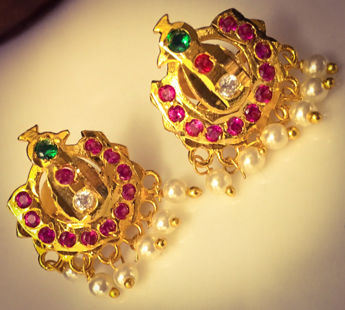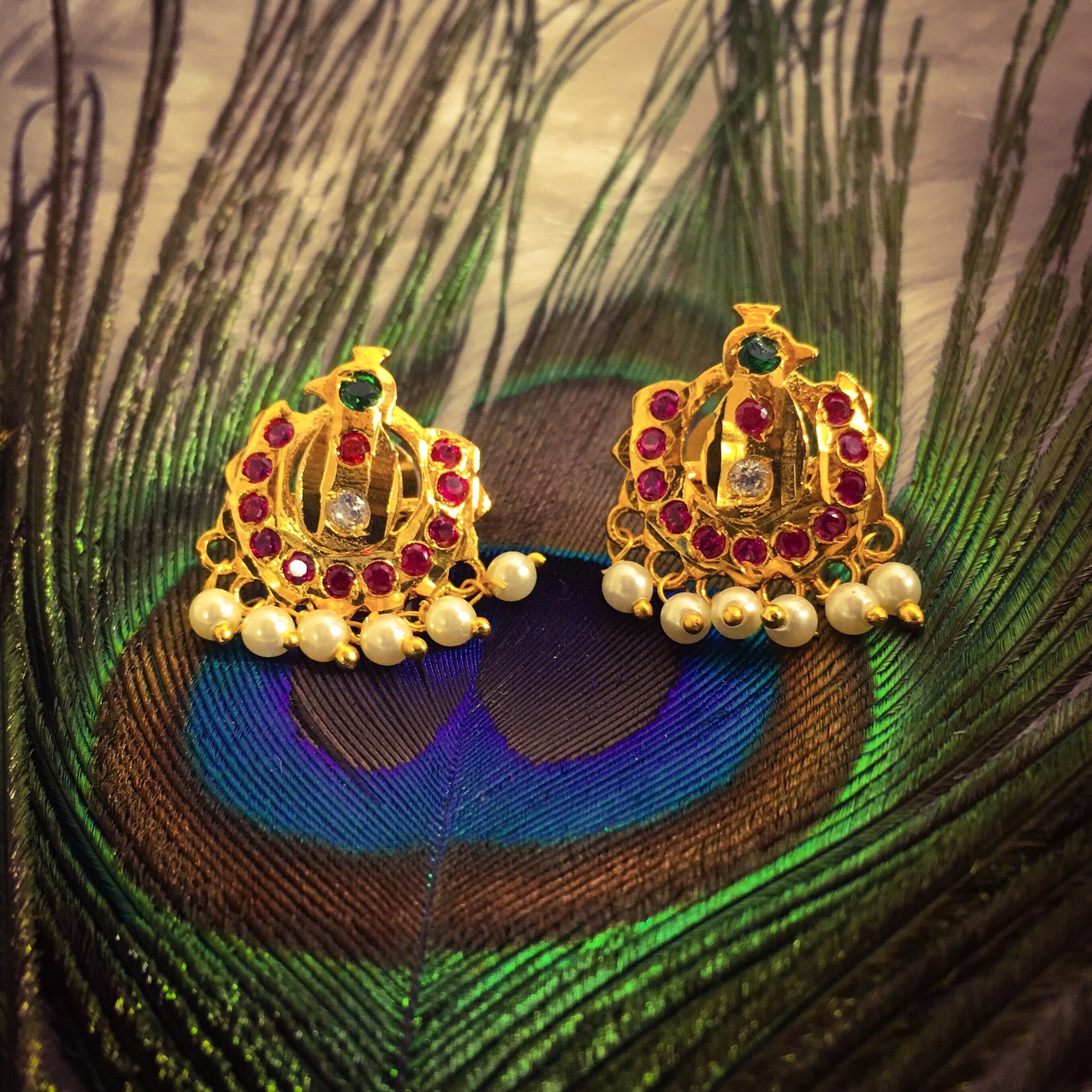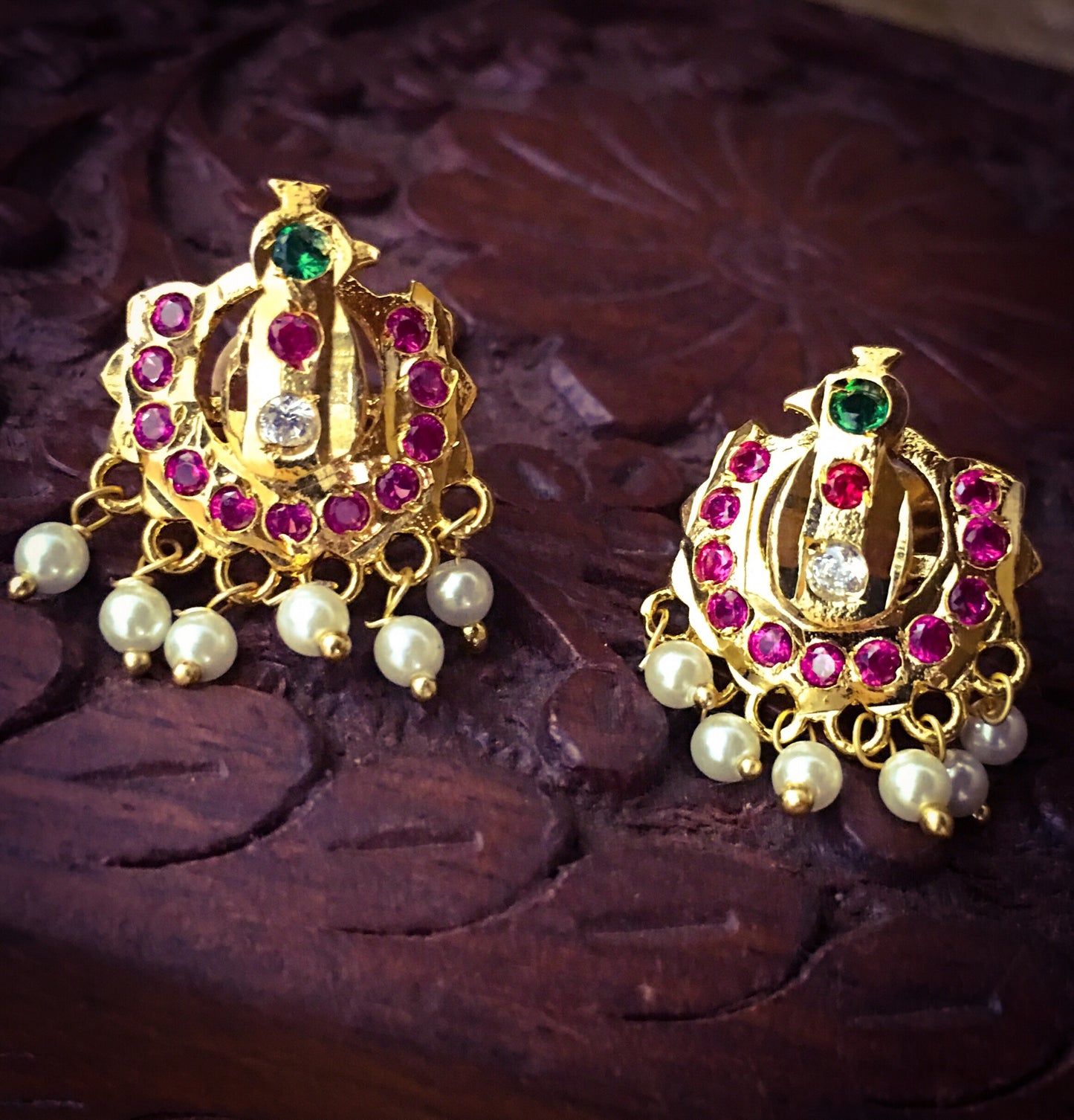 Complete your Maharashtrian look by adorning this pair of pink colour ear tops with your traditional saree. They are embedded with sparkling white - pink colour stones and woven with good quality pearl beads. These ear tops are made from golden polish metal and ensure high durability