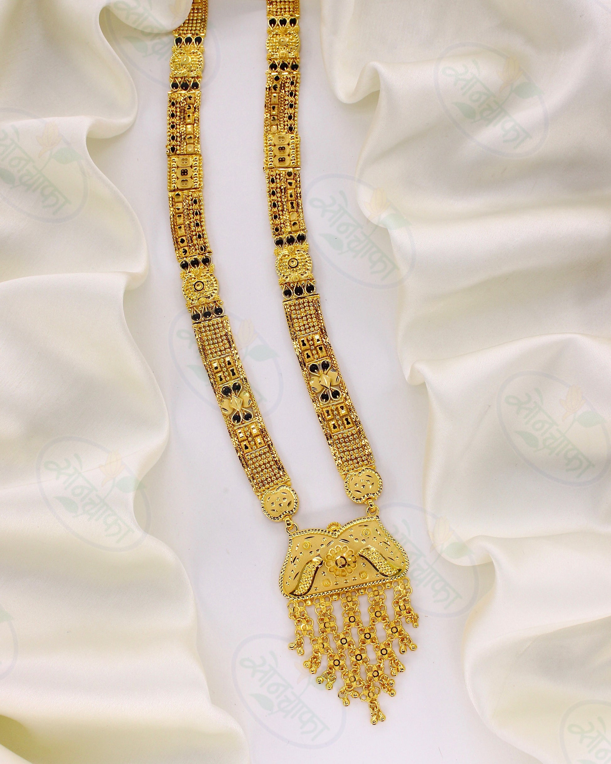 This festive season make an exclusive addition to your jewellery drawer by adding this 1 gram gold adorable mangalsutra. It is styled with wonderful floral pendant with wonderful gold plated swastik designer chain. It feature eye-pleasing work. It ensures high durability and skin-friendly as well.