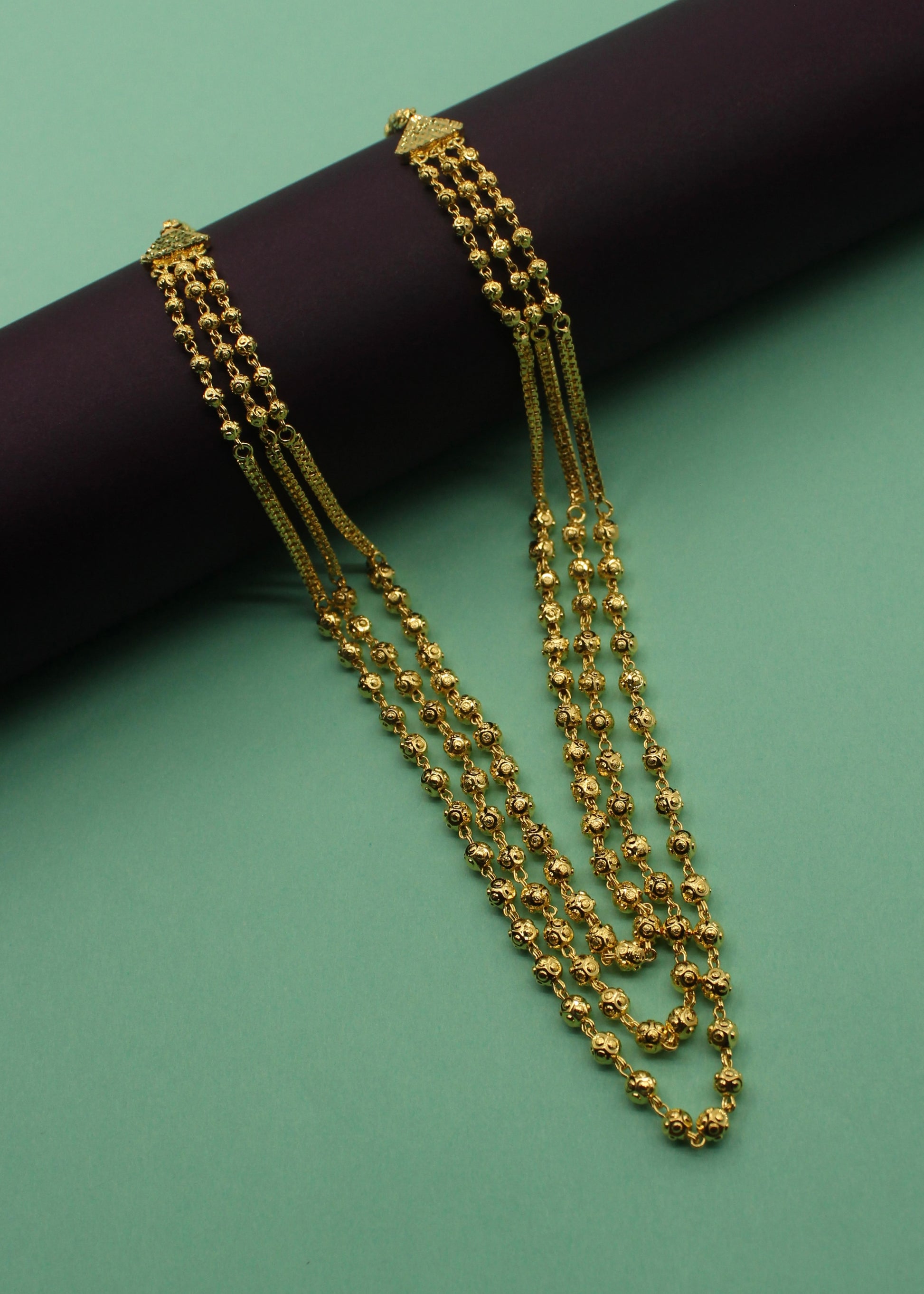 A designer traditional chain designer mohan mala from 1 gram golden collection. Team this golden beads & chain with your traditional outfits. It is woven with attractive multi layer golden beads in golden chain. This piece of jewellery comes from the Sonchafa Jewellery with quality and durability. Caring for your fashion jewellery.
