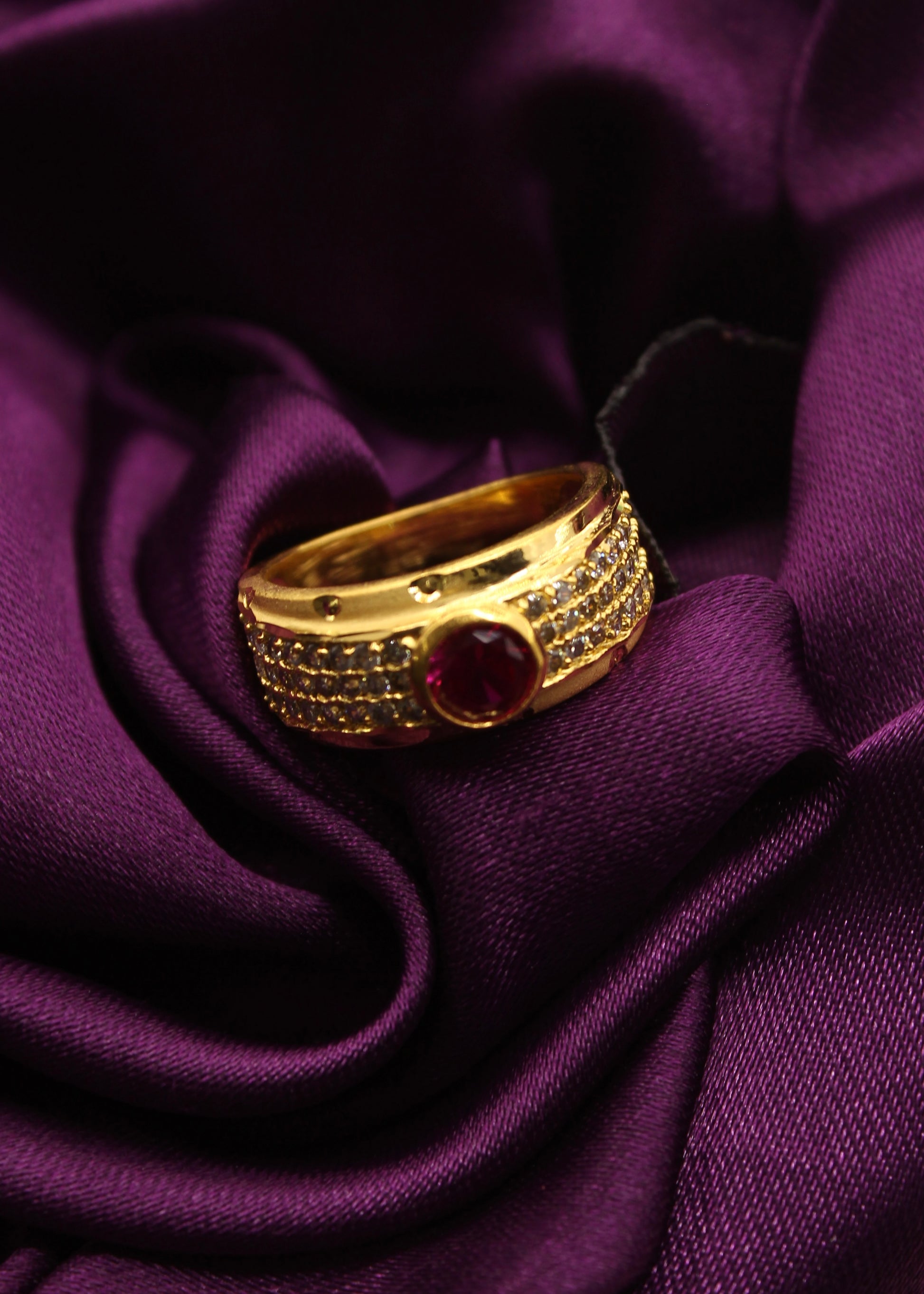 1 gram gold plated finger ring embedded with sparkling pink stone is truly very attractive and beautiful. Excellent quality and high durability of this finger ring.